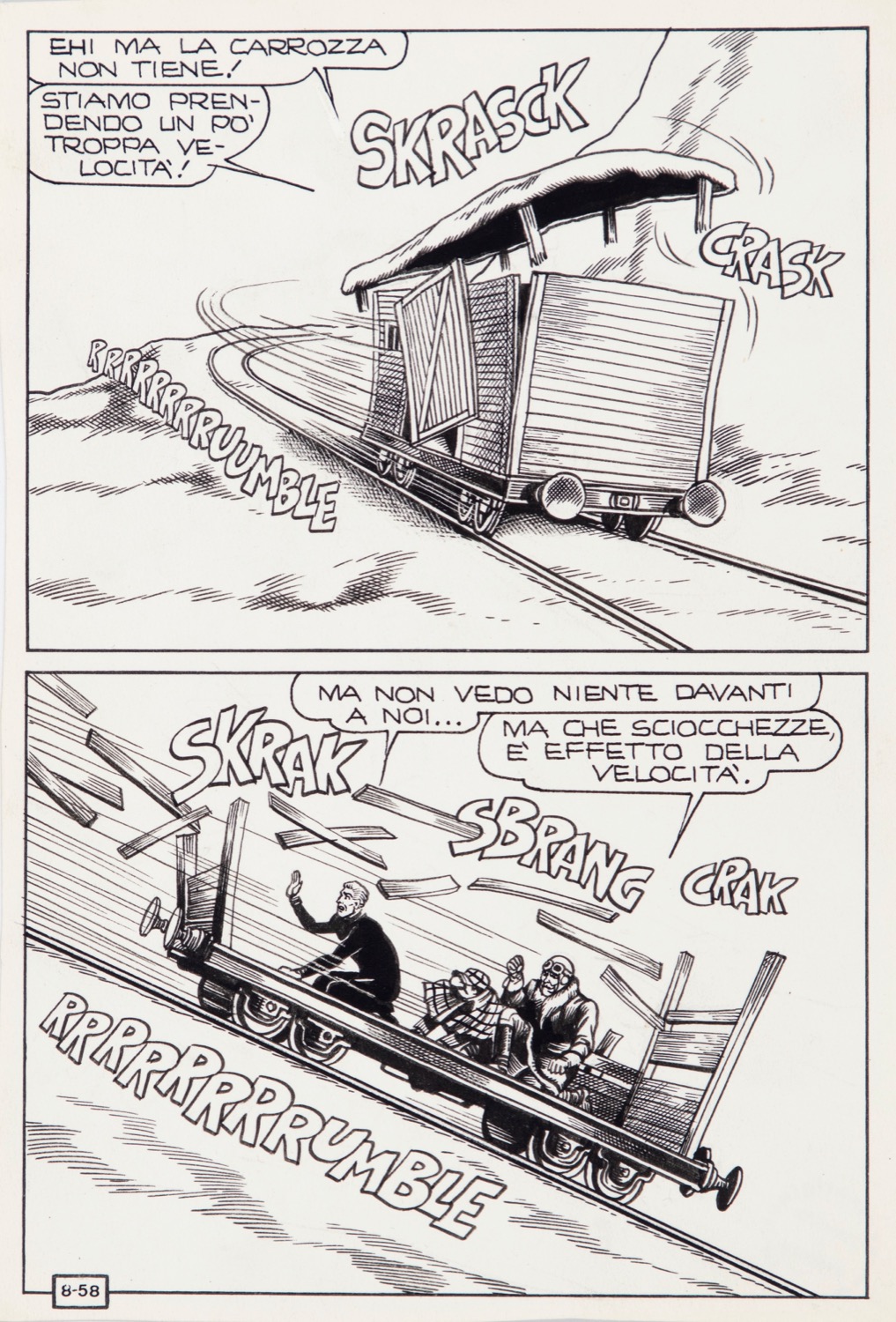 Tavola originale realizzata da Magnus per "L'albero di Natale", edita su Alan Ford n. 8 a pag. 58 dalla Corno nel 1969.