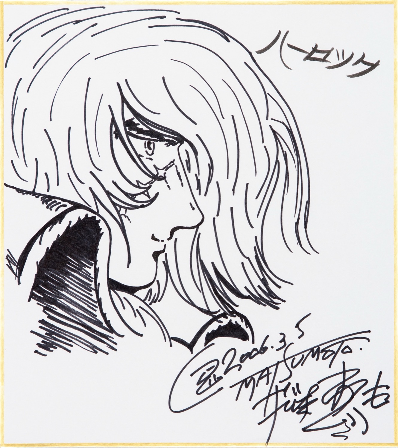 Shikishi originale realizzato da Matsumoto nel 2006 e raffigurante Capitan Harlock, il celeberrimo protagonista dell'omonimo manga di fantascienza, grazie al quale è diventato uno dei mangaka più osannati della storia. Firmato e datato.