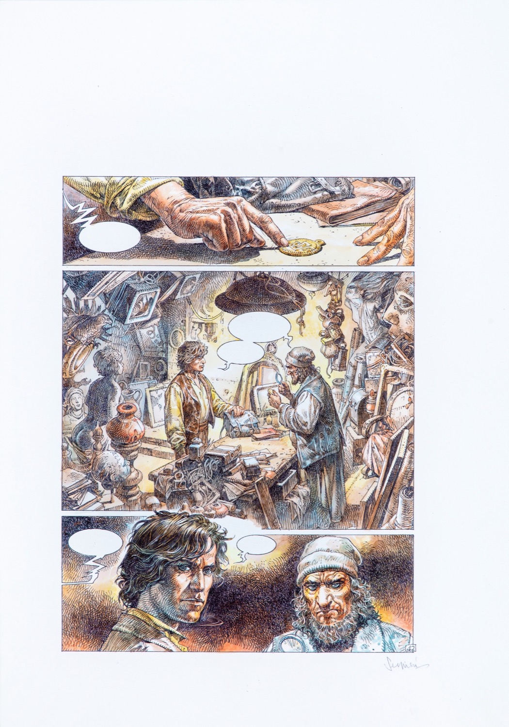 Definitivo a colori realizzato da Serpieri per il primo volume di Saria "Le tre chiavi", edita a pag. 42 dalla casa editrice francese Delcourt nel 2012. L'opera uscì per la prima volta nel 2007 in Francia per l'editore Laffont con il titolo di "Les Enfers". Firmato.