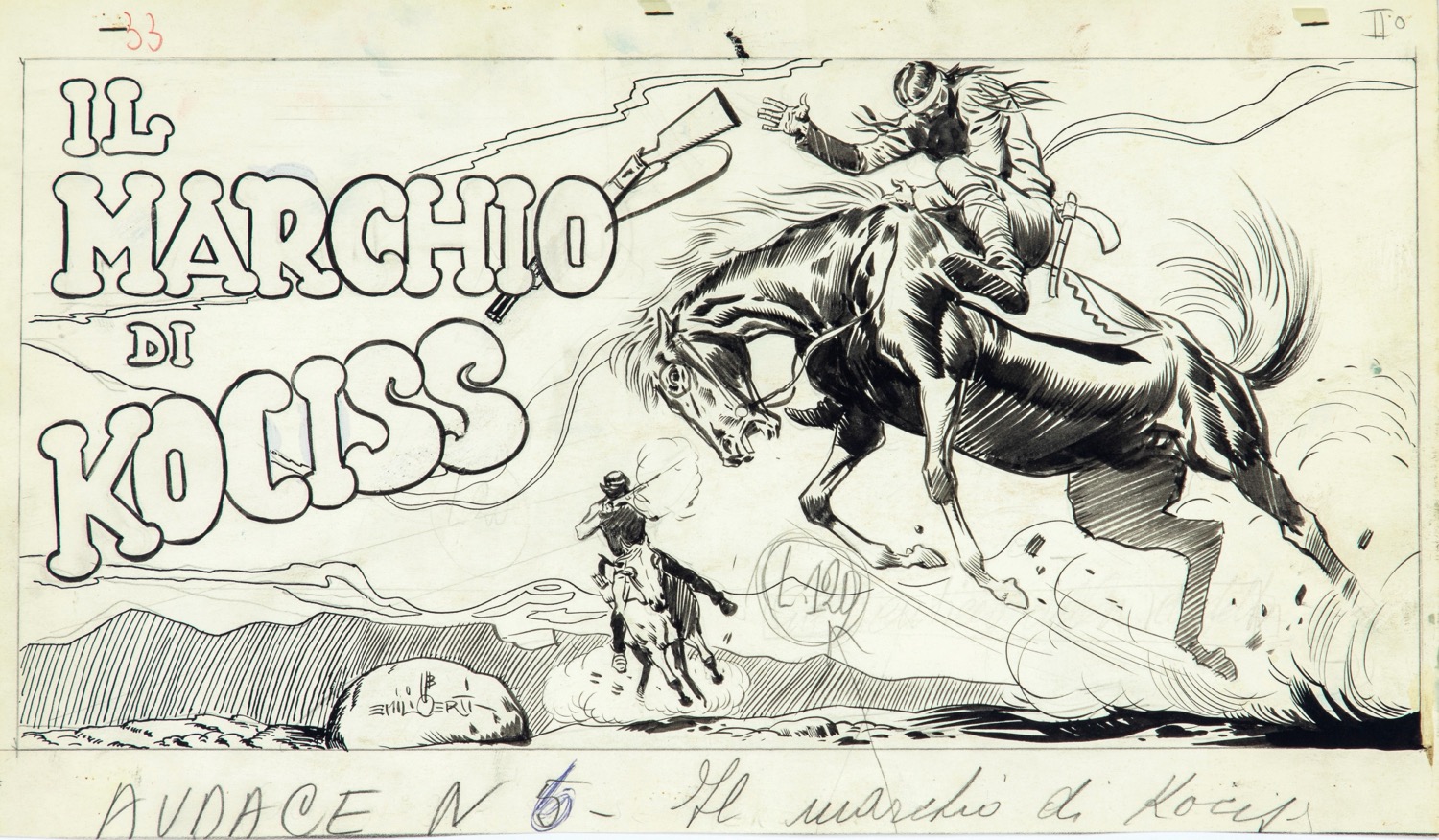 Originale di copertina realizzato da Uberti per "Il Marchio Di Kociss", edito nella Collana Audace n.6 dalle Edizioni Audace nel 1957. Punti metallici al margine superiore. Firmato.