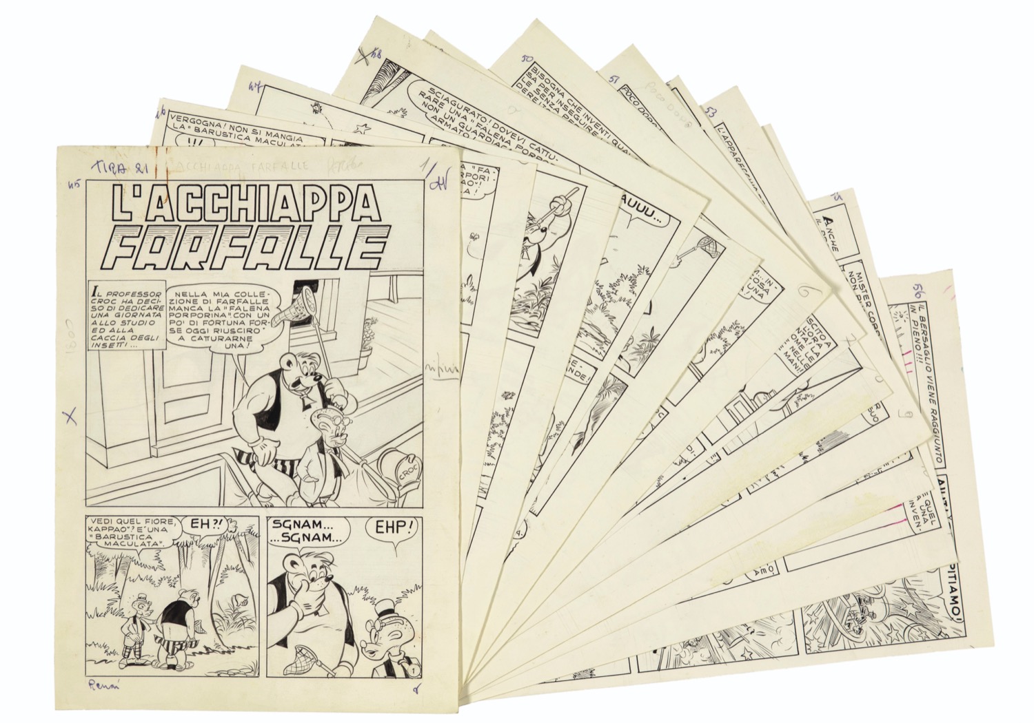 Storia completa composta da 12 tavole originali realizzate da Perego per "L'acchiappa farfalle", edita su Tiramolla n. 21 dalle Edizioni Alpe nel 1964.