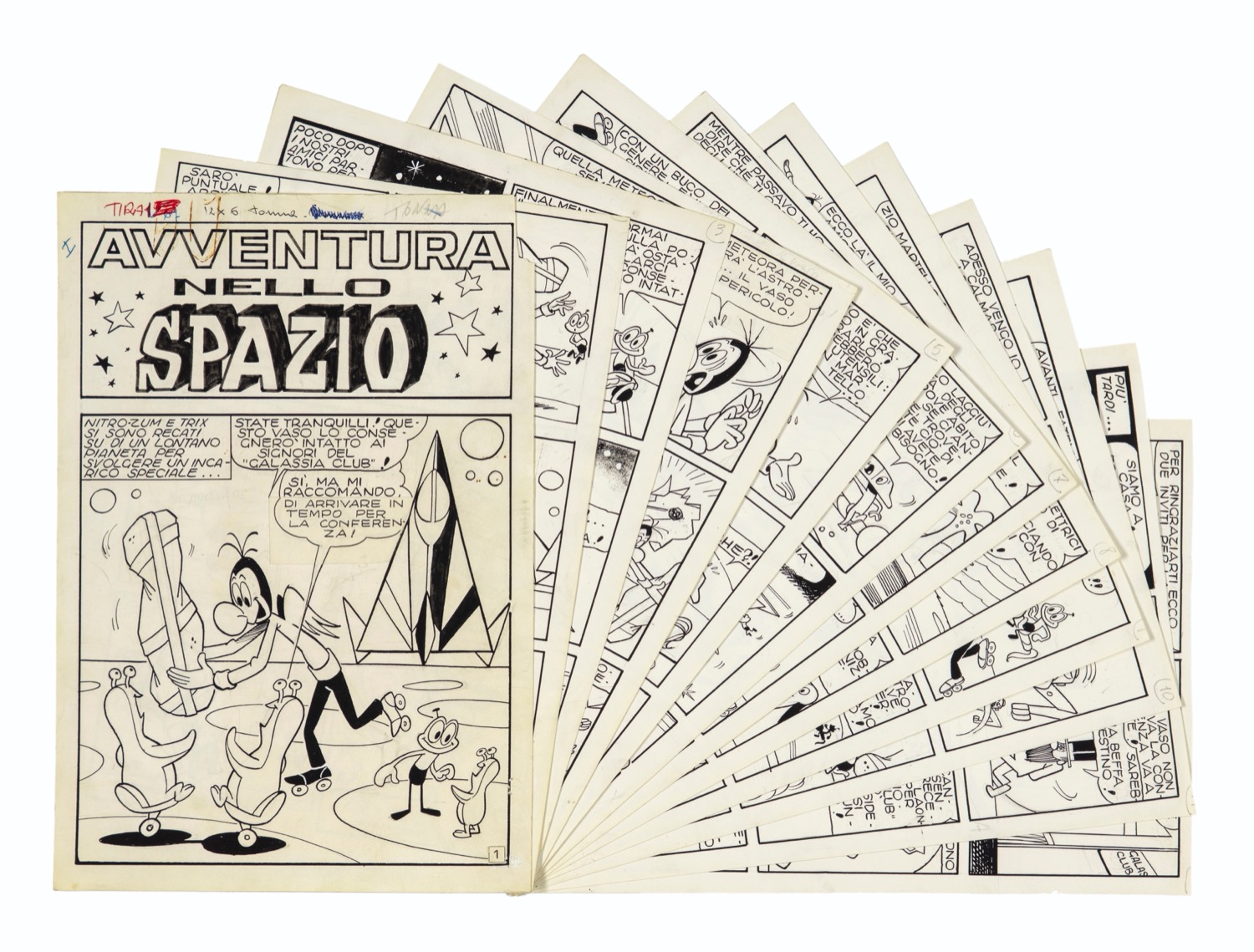 Storia completa composta da 12 tavole originali realizzate da Tonna per "Avventura nello spazio", edita su Tiramolla n. 67 dalle Edizioni Alpe nel 1967.