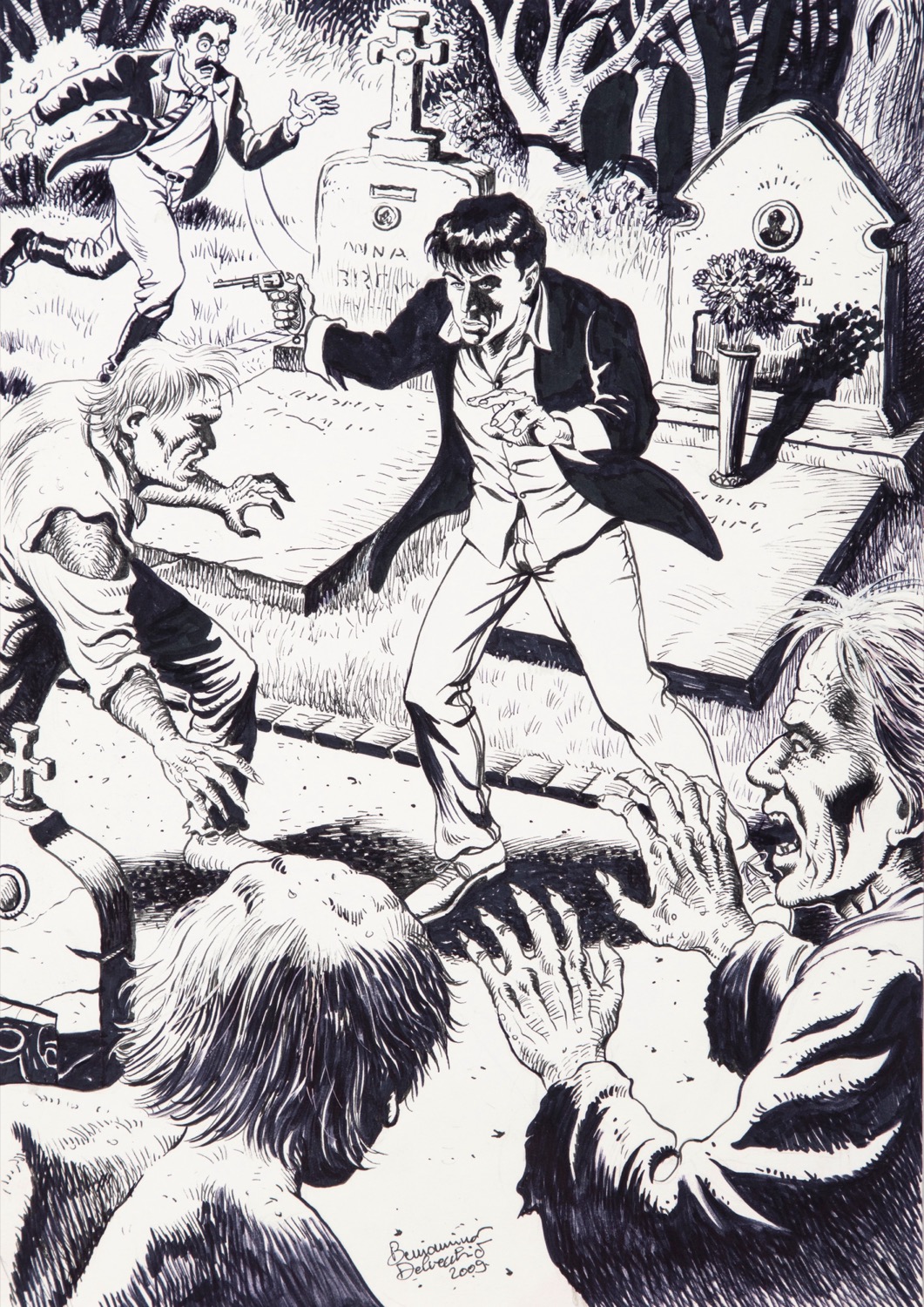 Illustrazione originale realizzata da Delvecchio come omaggio a Dylan Dog. Firmata e datata.