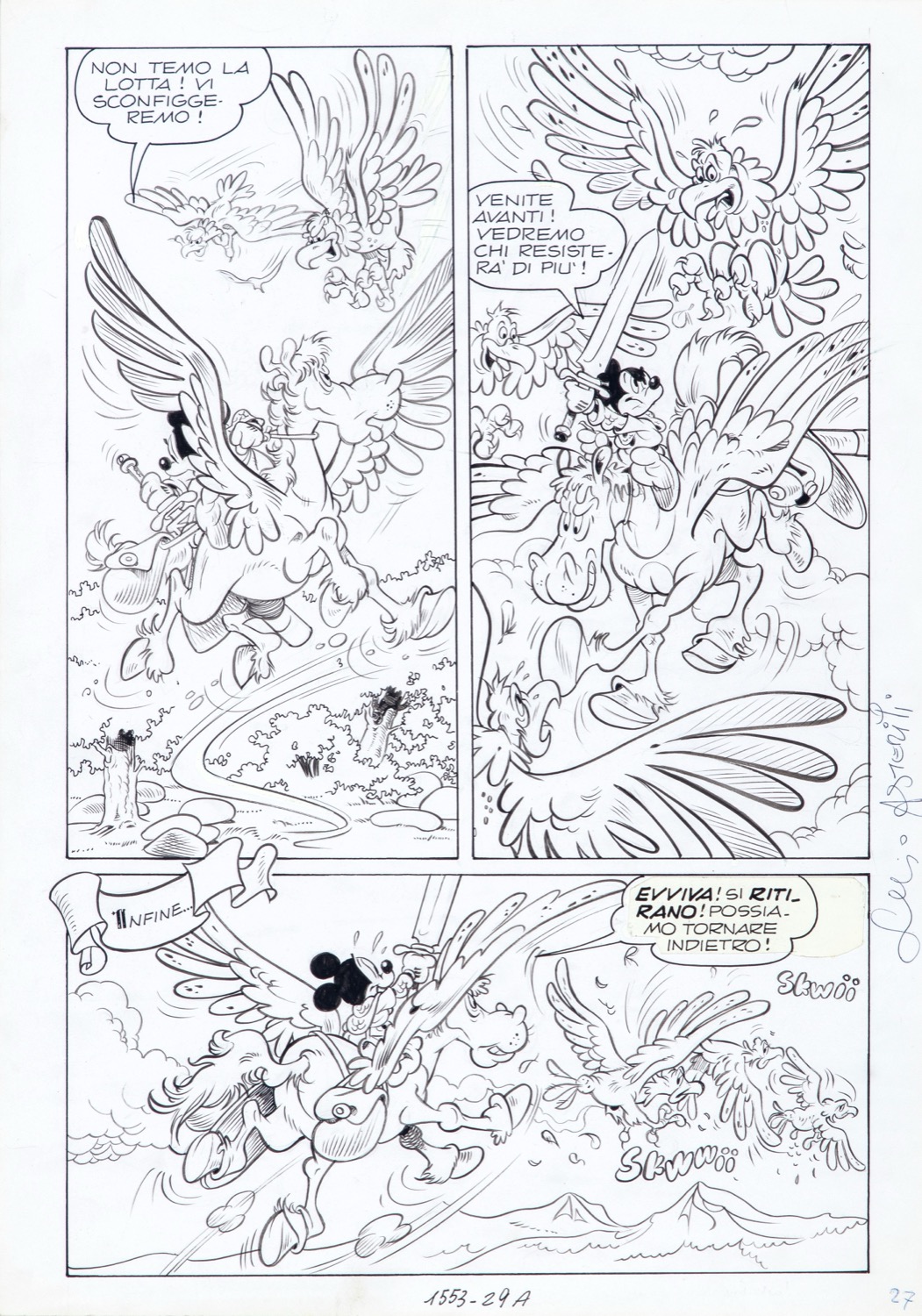 Tavola originale realizzata da Asteriti per "Topolino e il sigillo di re Artù", edita su Topolino n. 1553 a pag. 27 nel settembre del 1985. Firmata.