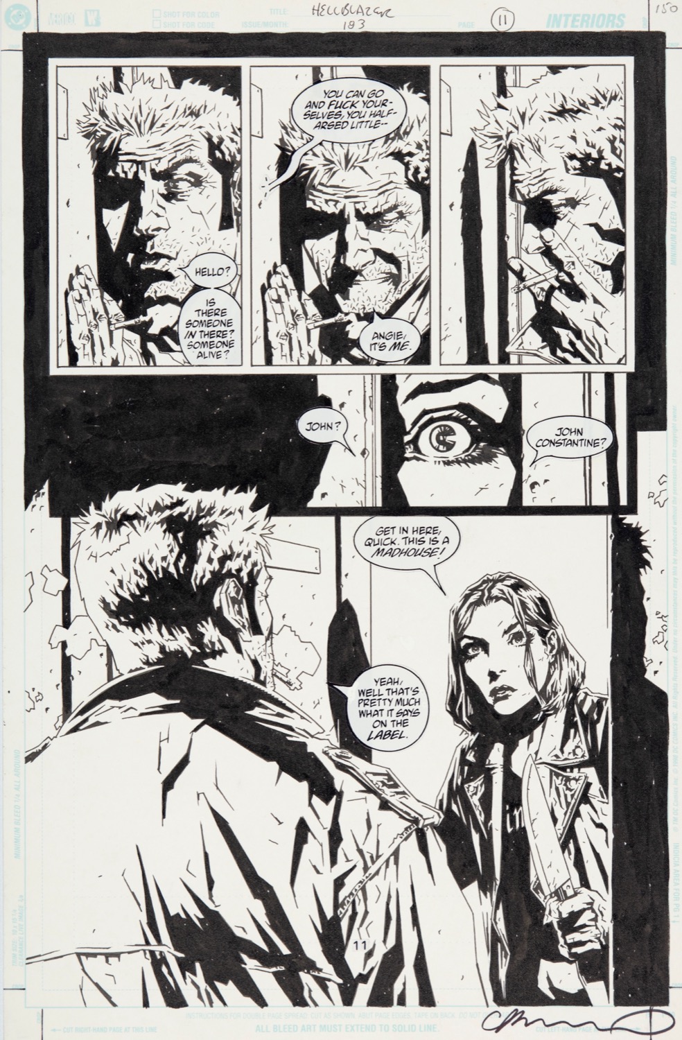 Tavola originale realizzata da Bermejo per "Black Flowers", edita su Hellblazer n. 183 a pag. 11 dalla Vertigo nel 2003. Firmata.