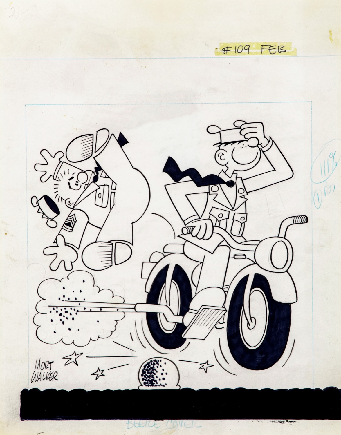Originale di copertina realizzato da Walker per Beetle Bailey n. 109, edito dalla Charlton Comics nel Febbraio 1975. Lieve piega diagonale. Firmato.