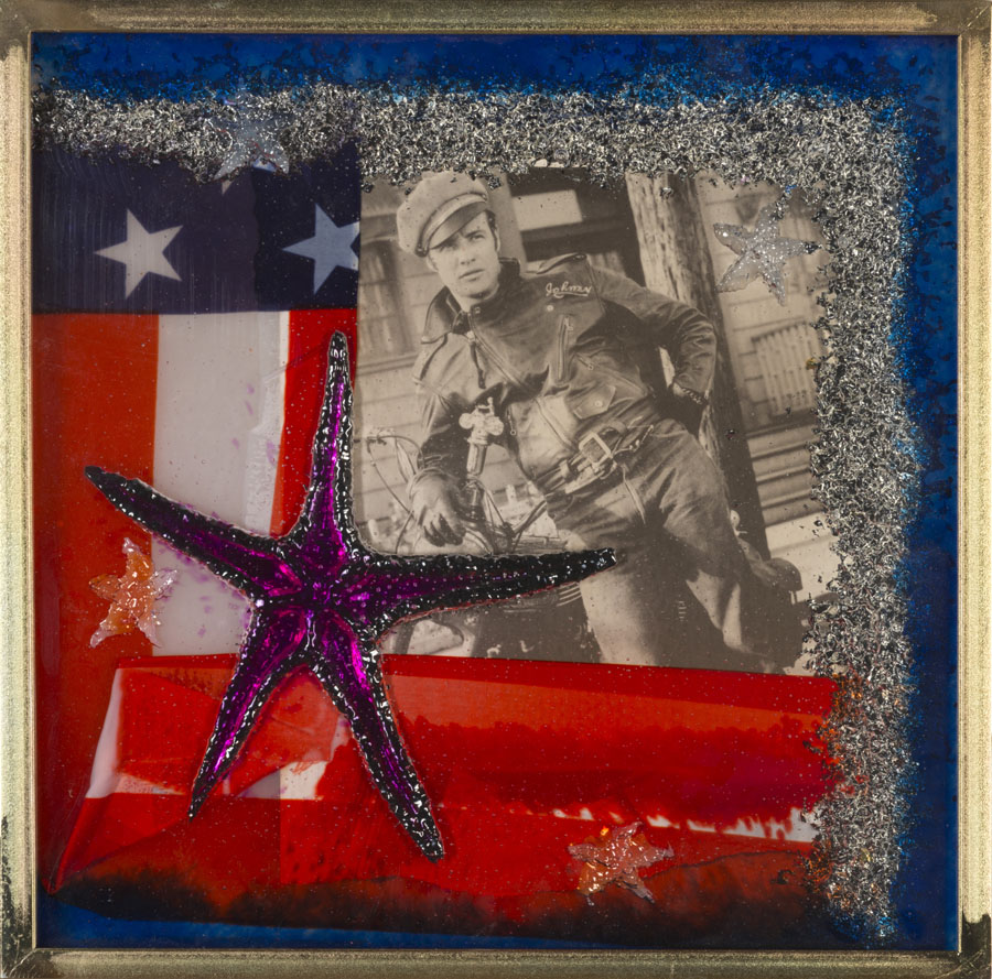 Omar Ronda (Portula 1947) - "Marlon Frozen" 2006 resina, fotografia, bandiera, cm 50x50 Firmato, titolato e datato 2006 al retro