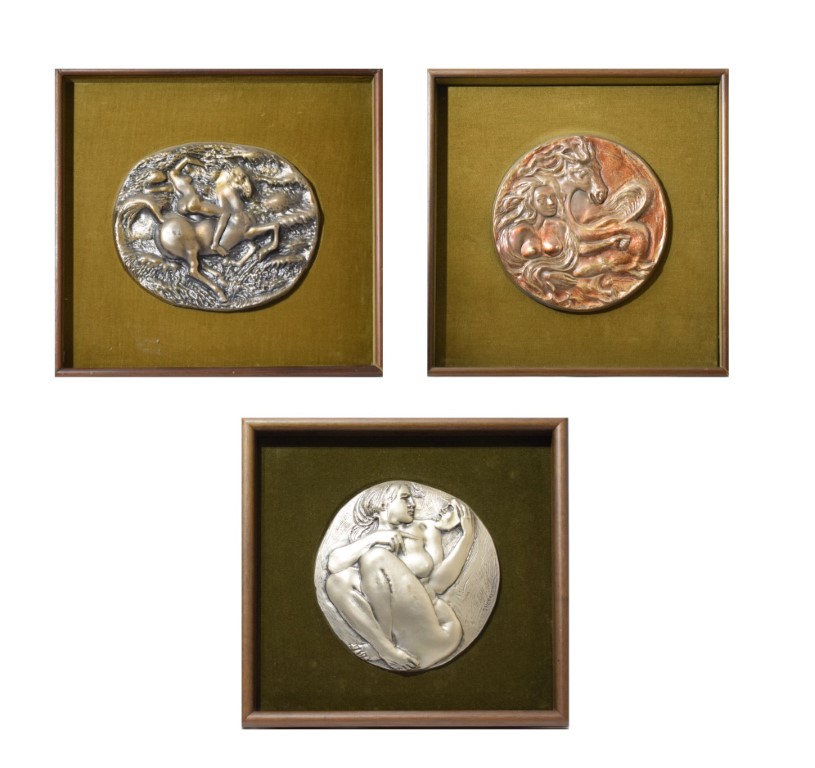 Lotto di 3 bassorilievi in argento di: Pericle Fazzini, Aligi Sassu e Emilio greco