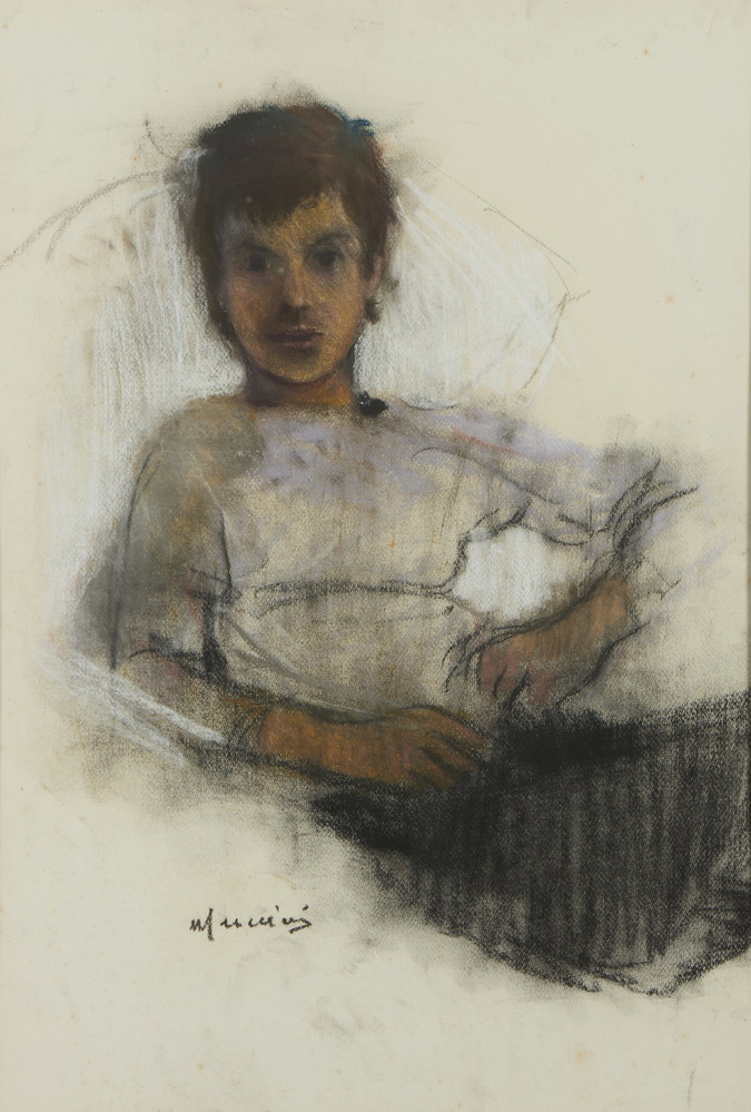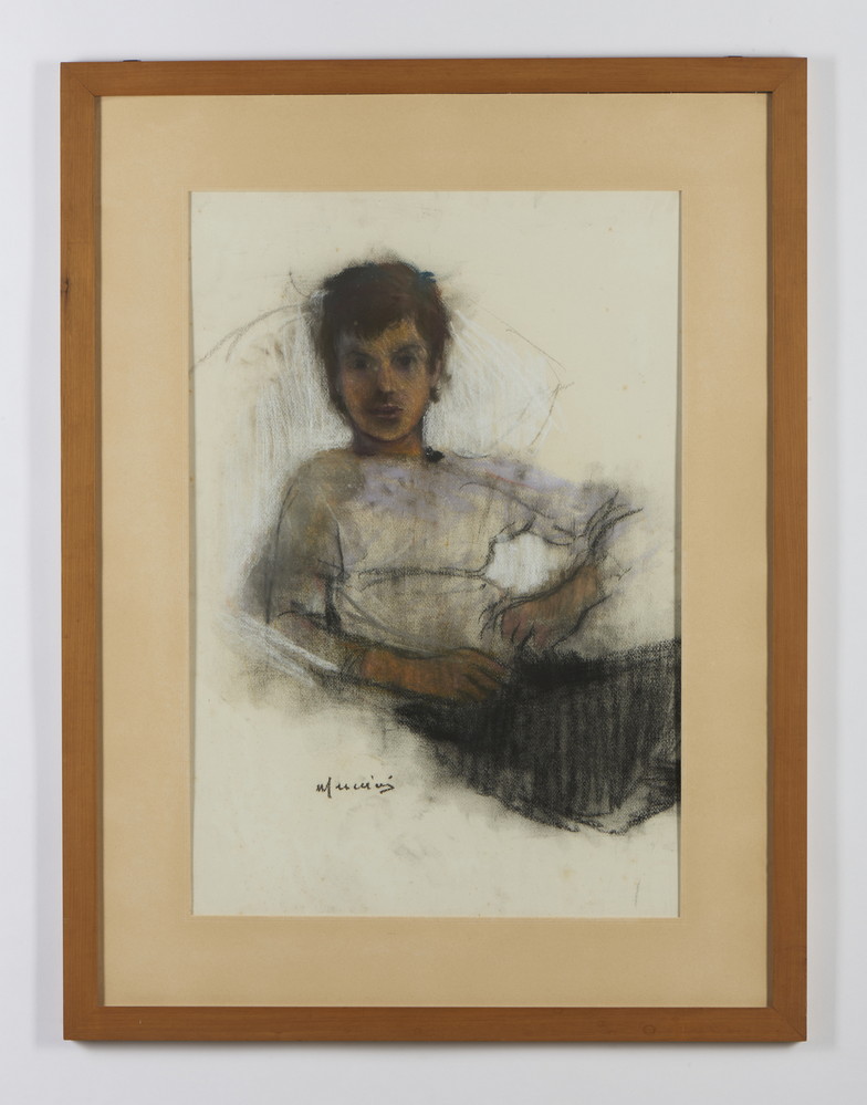 MUCCINI MARCELLO (1926 - 1978) RAGAZZO SDRAIATO. pastello a olio su carta. Cm 57,00 x 75,50. firma