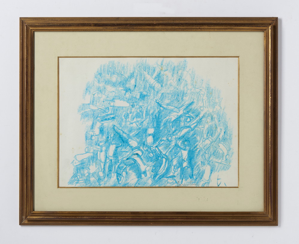 TARANTINO GIUSEPPE (1916 - 1999) BATTAGLIA. pastello colorato su carta. Cm 34,00 x 23,50. firma