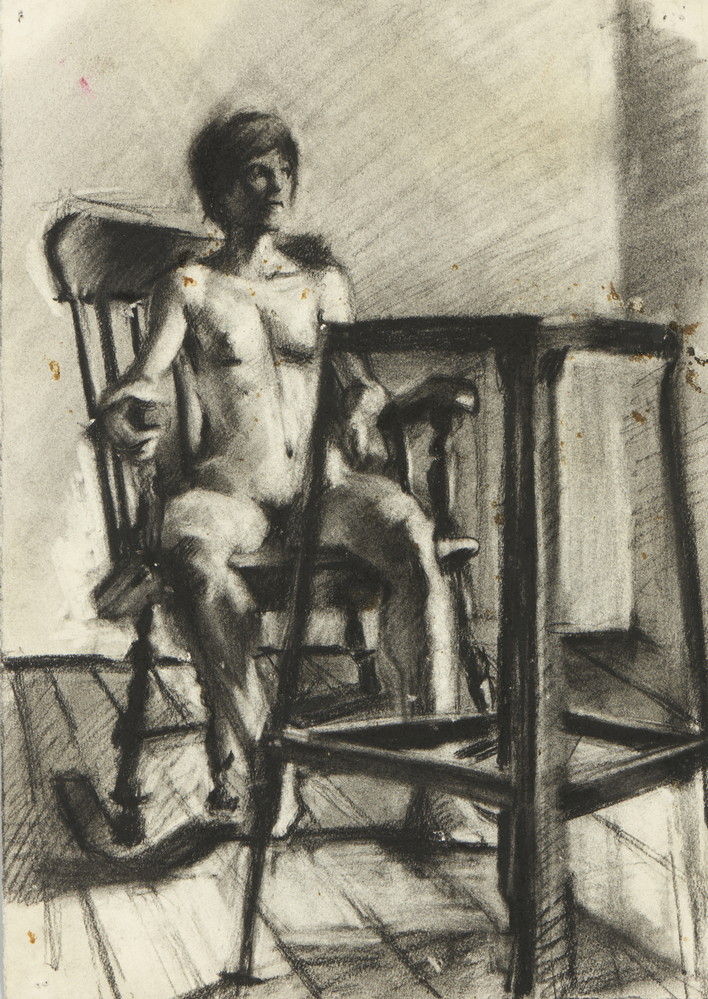 AUTORE NON IDENTIFICATO SENZA TITOLO (MODELLA). Disegno a carboncino su carta. . opera fronte/retro
