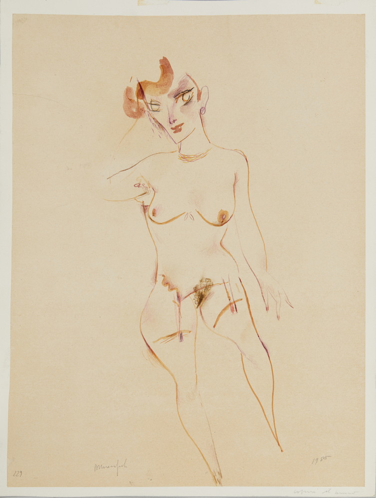 MANFREDI ALBERTO (1930 - 2001) COPRIMI IL (... ). 1985. acquarello su carta applicata su altra carta da stampa. Cm 30,00 x 40,00. firma, data e titolo