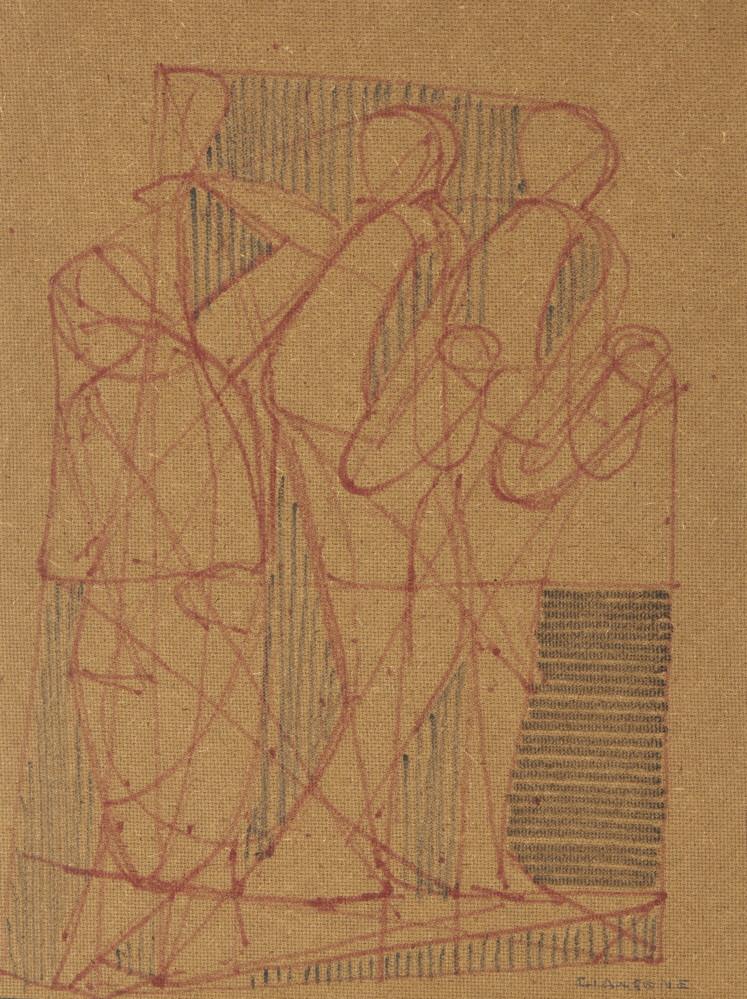 GIANSONE MARIO (1915 - 1997) CONCERTO JAZZ. 1962. Disegno su masonite. Cm 30,00 x 40,00. firma