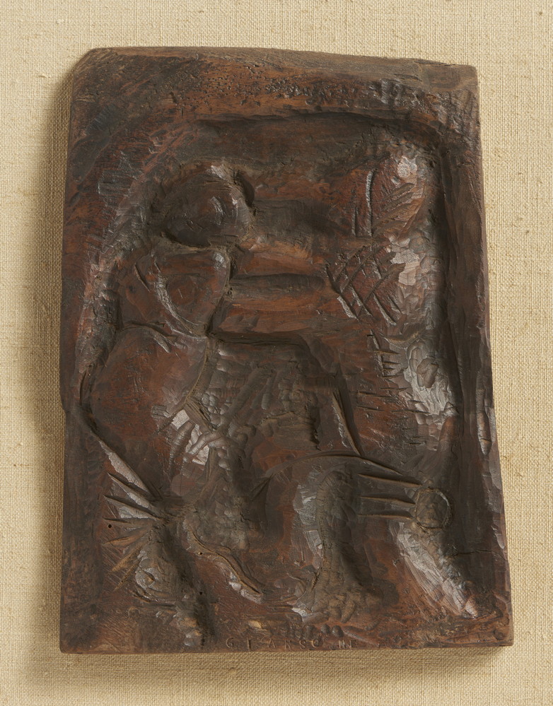 GIANSONE MARIO (1915 - 1997) SENZA TITOLO . Tavoletta lignea. Cm 22,00 x 29,00. firma incisa. Cornice presente