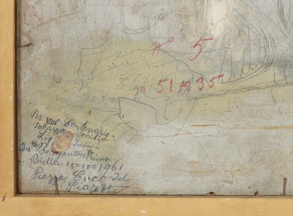 BERGANTON PRIMO (1895 - 1976) PIAZZA CUCO. 1961. Olio su tavola. Cm 50,00 x 34,50. firma e titolo