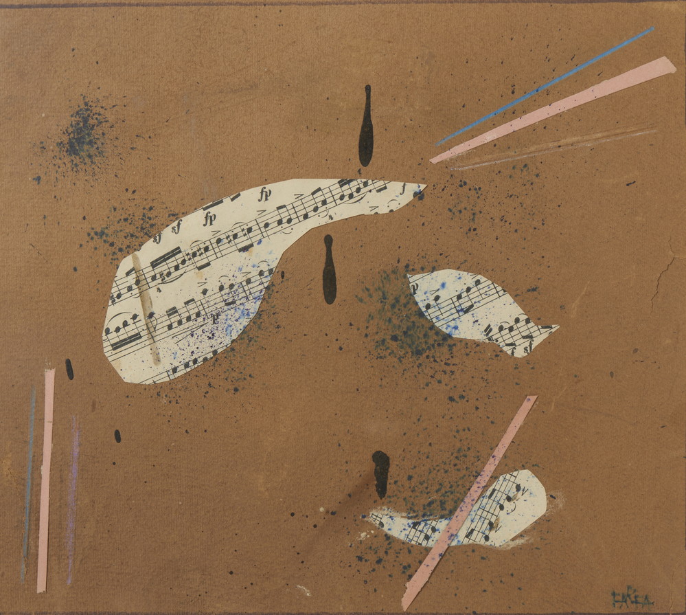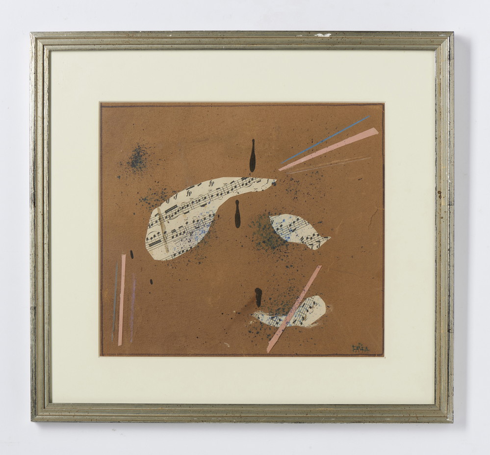 FARFA (VITTORIO OSVALDO TOMMASINI) (1881 - 1964) SENZA TITOLO . collage e tecnica mista su cartoncino. Cm 26,70 x 23,70. firma. Cornice presente