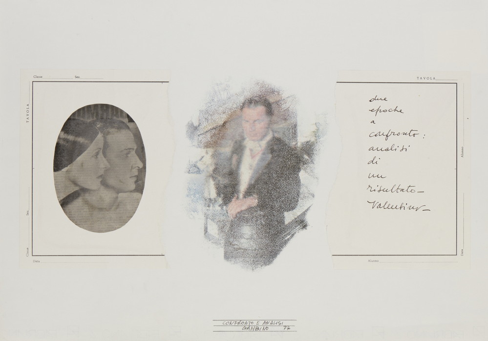 GAMBINO DUILIO (1937 - 2013) CONFRONTO E ANALISI: VALENTINO. 1977. tecnica mista su carta. Cm 60,00 x 41,50. titolo, firma e data e filigrana