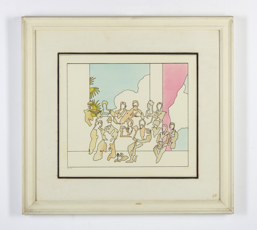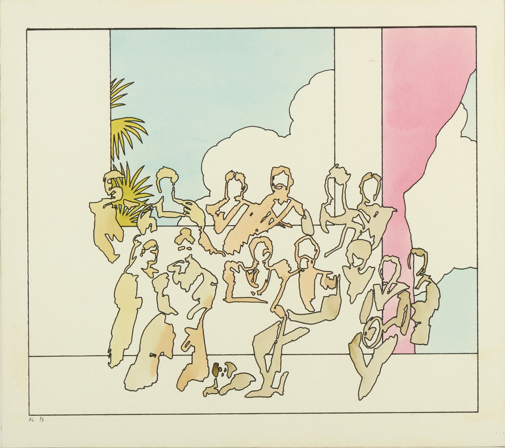 CRIDA PIERO (n. 1949) PRINZ, PRINZESSIN E FAMIGLIA . 1973. tecnica mista su carta. Cm 49,00 x 44,50. monogramma e data