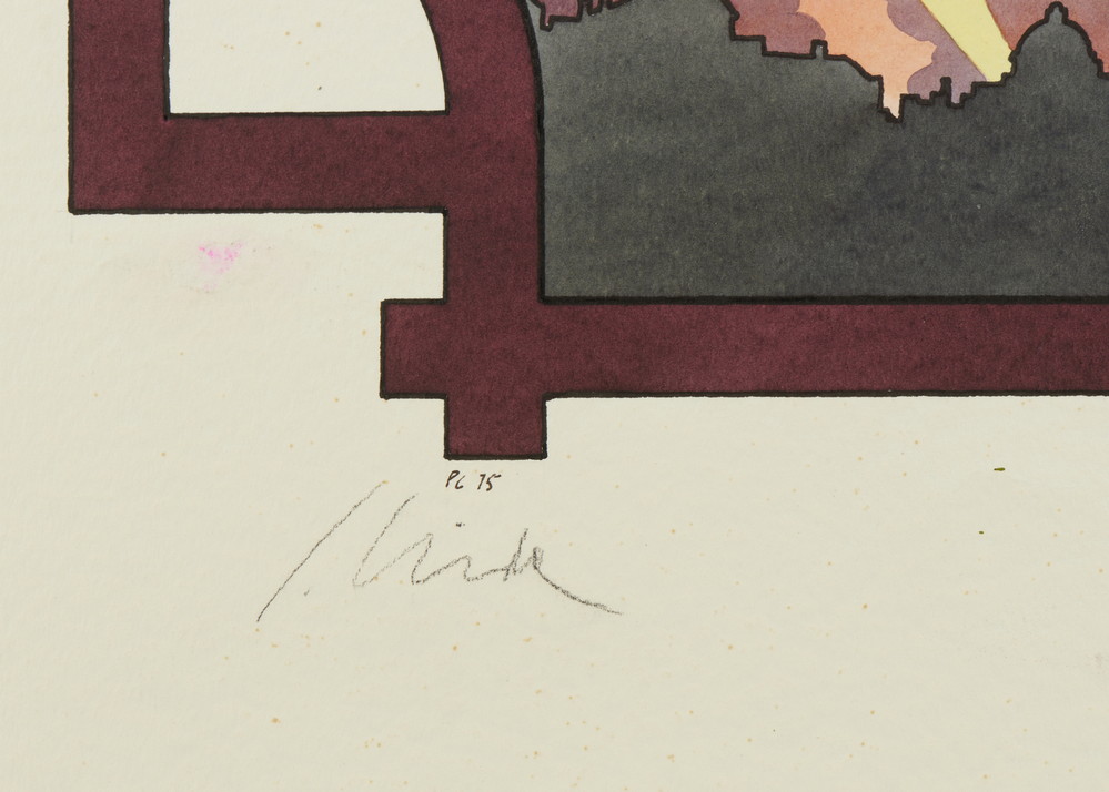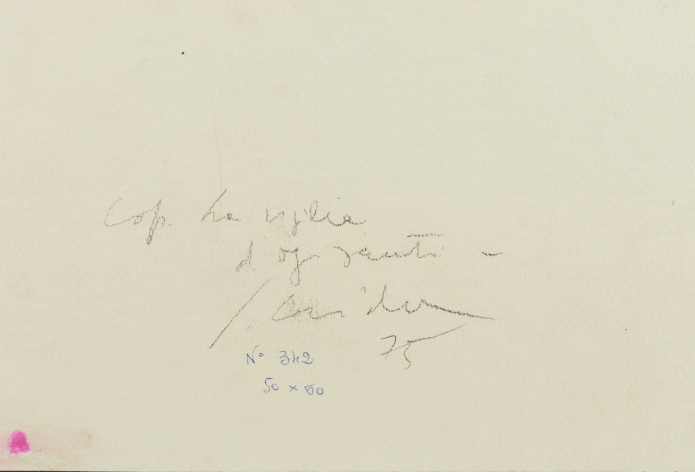 CRIDA PIERO (n. 1949) SENZA TITOLO (LA VIGILIA). 1975. tecnica mista su carta. Cm 50,00 x 60,00. firma, monogramma e data