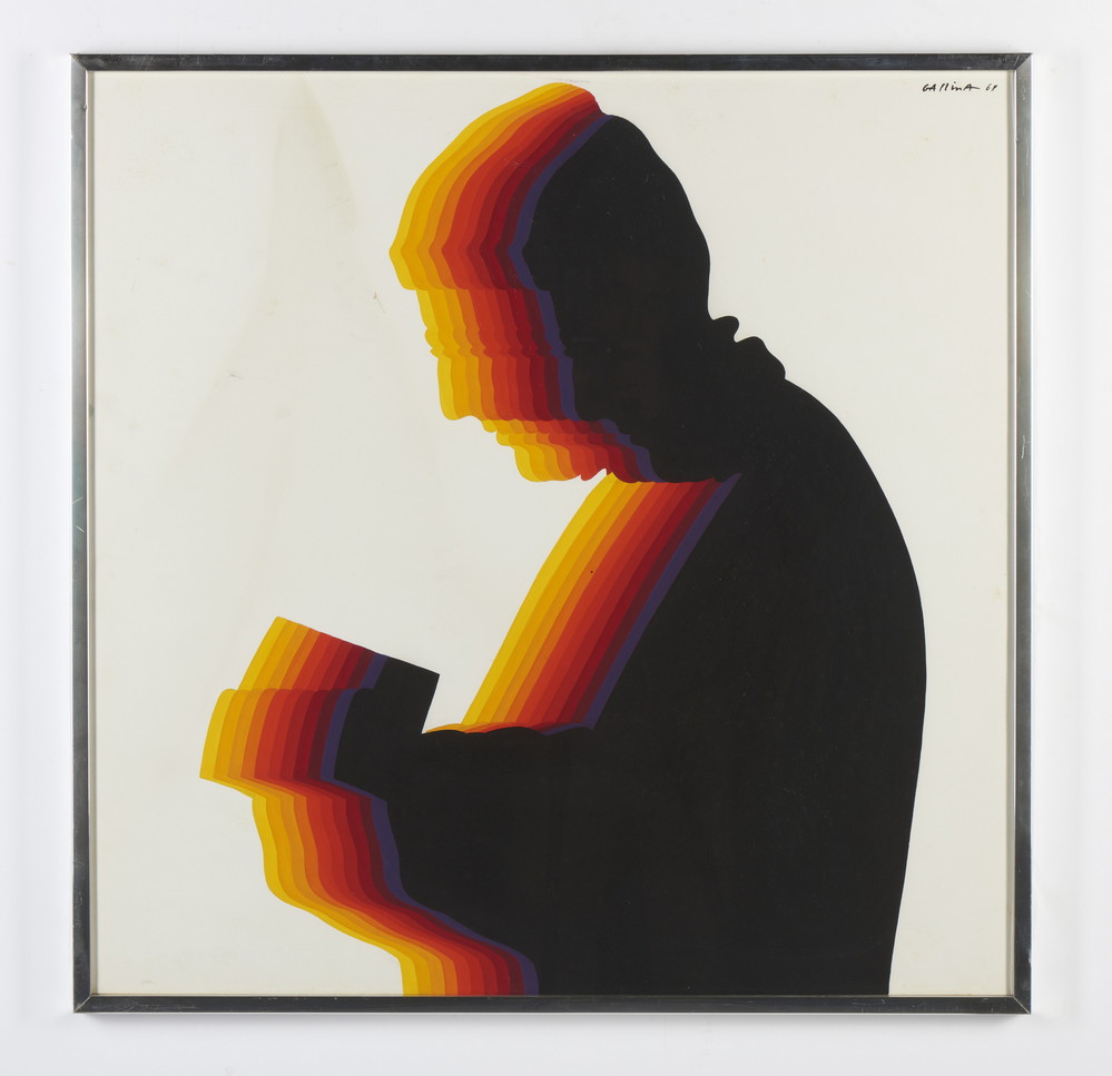 GALLINA PIETRO (n. 1937) LETTORE. 1968. Tempera su carta. Cm 70,00 x 70,00. firma e data