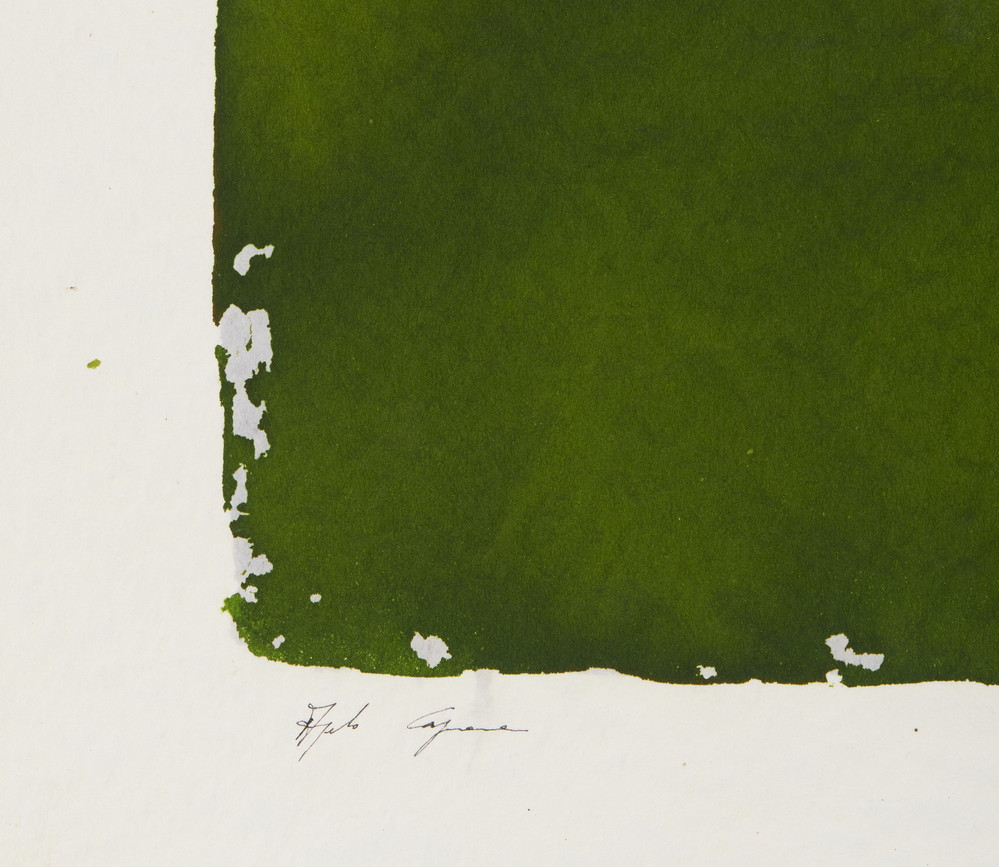 CAGNONE ANGELO (n. 1941) DI FRONTE . 1973. tecnica mista su carta. Cm 56,00 x 42,00. firma e data