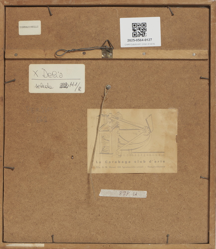PERSICO MARIO (n. 1930) TOMBOLA. tecnica mista. Cm 26,00 x 30,00. sul retro: cartiglio La Caragaba Club d'arte, Sampierdarena, Genova