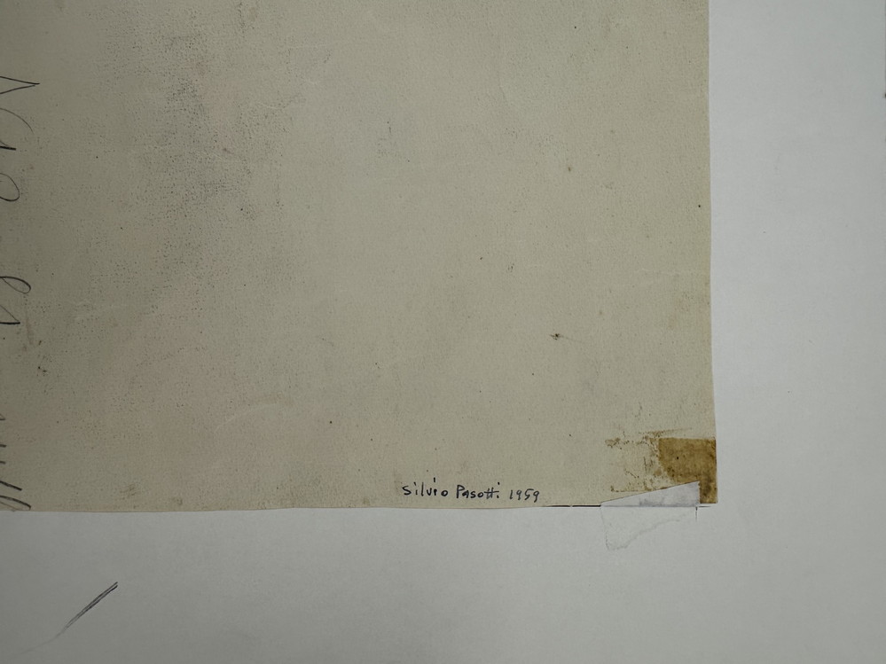 PASOTTI SILVIO (n. 1934) SENZA TITOLO. 1959. tecnica mista su carta. Cm 35,00 x 25,00. sul retro : firma e data