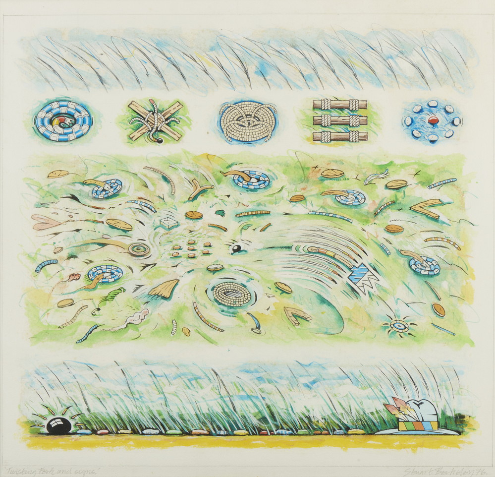 BERKELEY STUART (n. 1944) TWISTING FORK AND SIGNS . 1976. tecnica mista su carta. Cm 53,50 x 50,00. firma, titolo e data