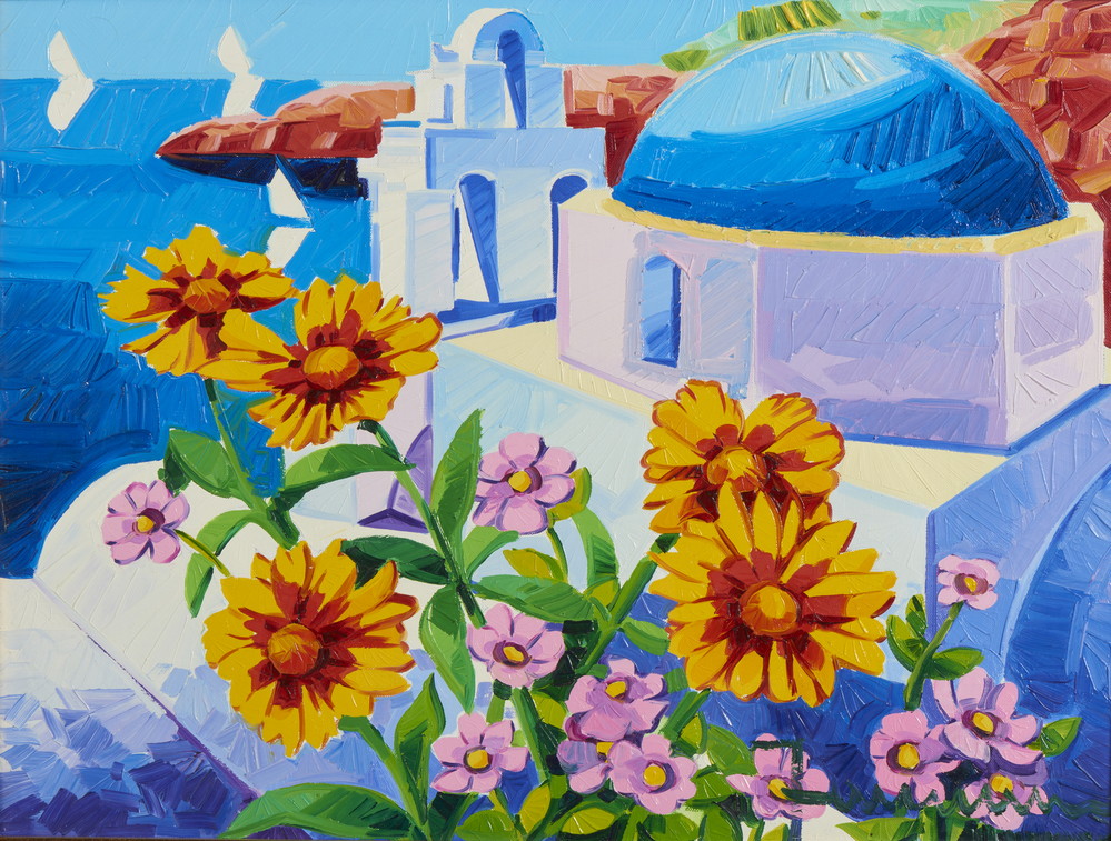 FACCINCANI ATHOS (n. 1951) - CUPOLA BLU E FIORI GIALLI.