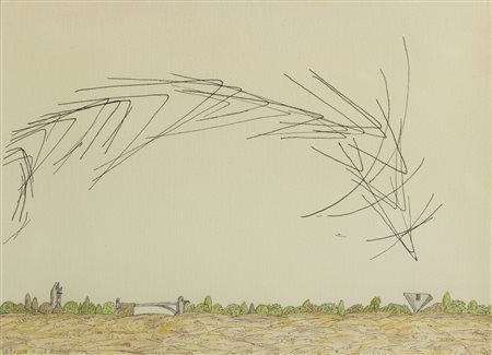 ECHAURREN PABLO (n. 1951) LA CADUTA DELLA RONDINE . 1978. China e acquarello su carta. Cm 38,00 x 28,00. firma, titolo e data