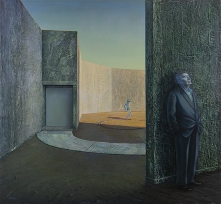 MULAS FRANCO (n. 1938) IL CORSO DEL TEMPO. 1977. Olio su tavola. Cm 162,50 x 150,00. firma