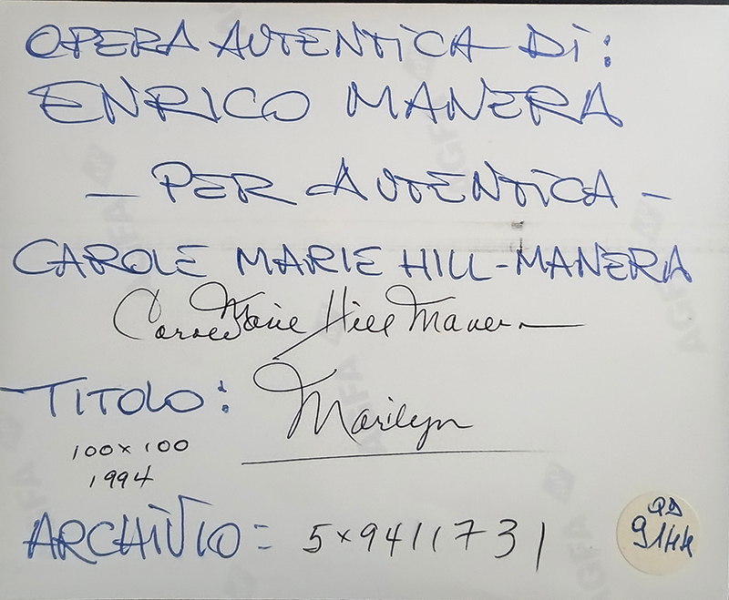 Archivio Enrico Manera per autentica Carole Marie Hill Manera n,5X9411731 - Firmato retro opera