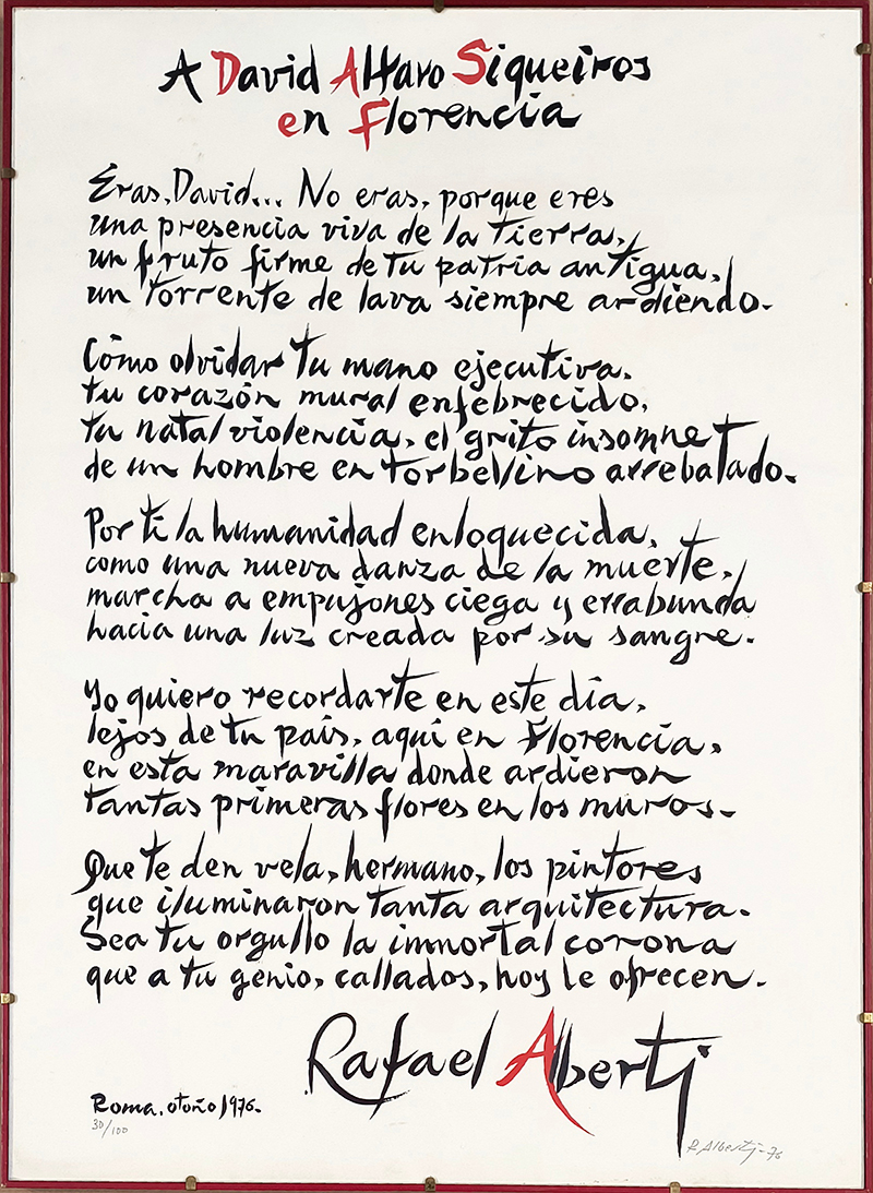 Lotto 135 | Rafael Alberti, 'A David Alvaro Siqueiros en Florencia', 1976
