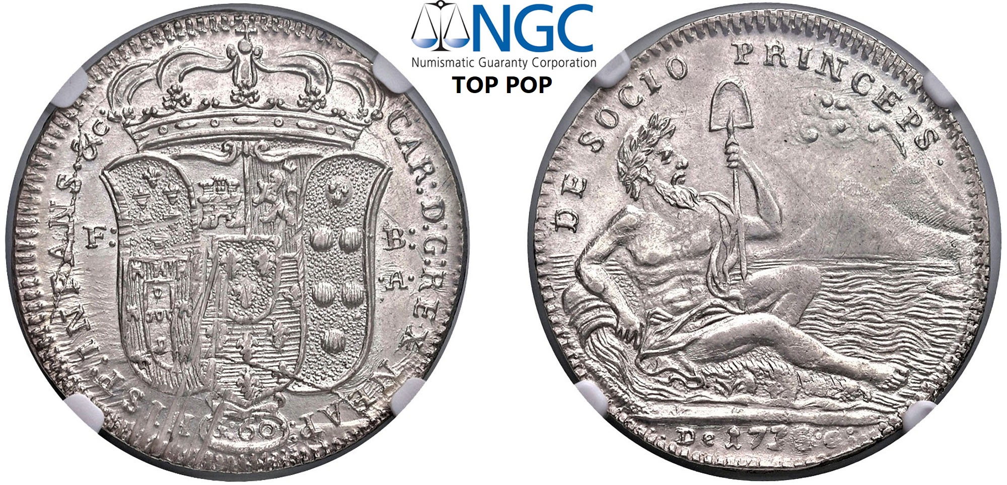 Dritto: Stemma coronato; - Rovescio: Sebeto sdraiato, sullo sfondo il Vesuvio.
