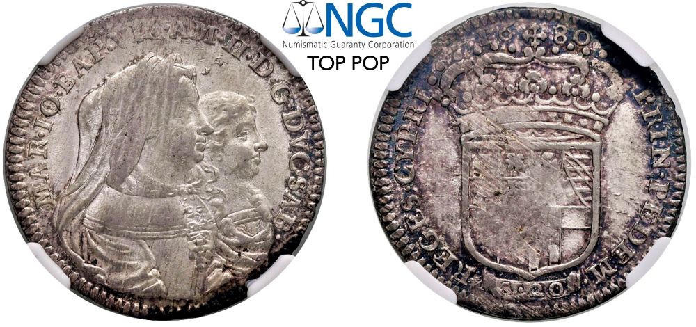 VITTORIO AMEDEO II, Reggenza della madre Maria Giovanna Battista (1675-1680) - Lira 1680, Torino.Argento - n.d.Dritto: Busti accollati del Duca e della Reggente, a destra; - Rovescio: Scudo inquartato con Savoia in cuore, coronato.MIR 947f Molto raroUsuali strappi e debolezze di conio. Magnifico esemplare dal lustro intenso ed omogeneo.Sigillato NGC MS63 - TOP-POP.Certificato NGC n. 3997931-020.Ex Asta Nomisma Verona 1, del 13 e 14 maggio 2022, lotto 546.