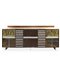 Sideboard con sportelli scanalati e sportelli a vetri con pannelli dipinti e firmati G.Crestani, 60's h cm 131X300X51,5 Segni d'uso Segni d'uso