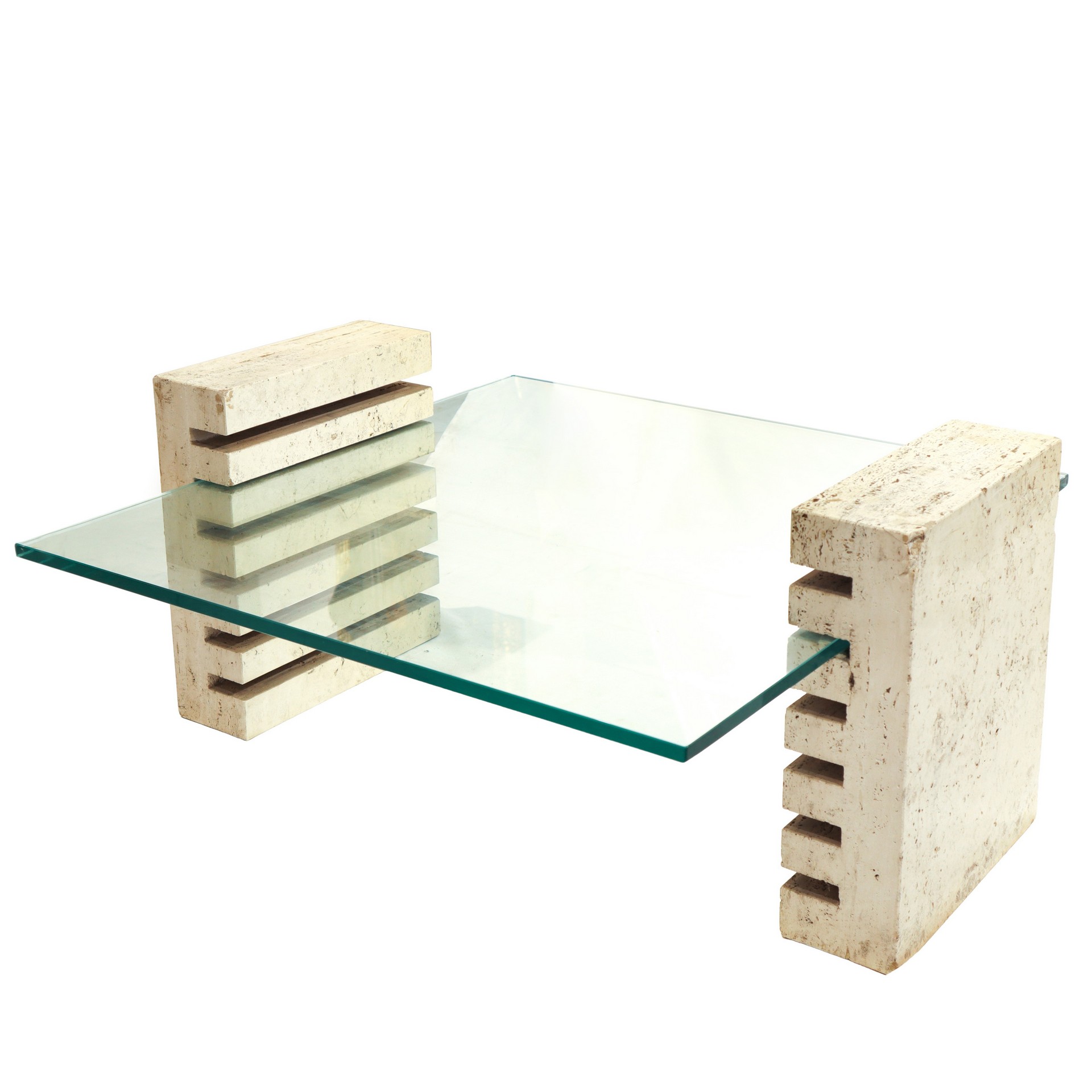 Silvana Bertoldi per Citterio Meda (anni '70) - Tavolino basso in marmo travertino e vetro, 70's