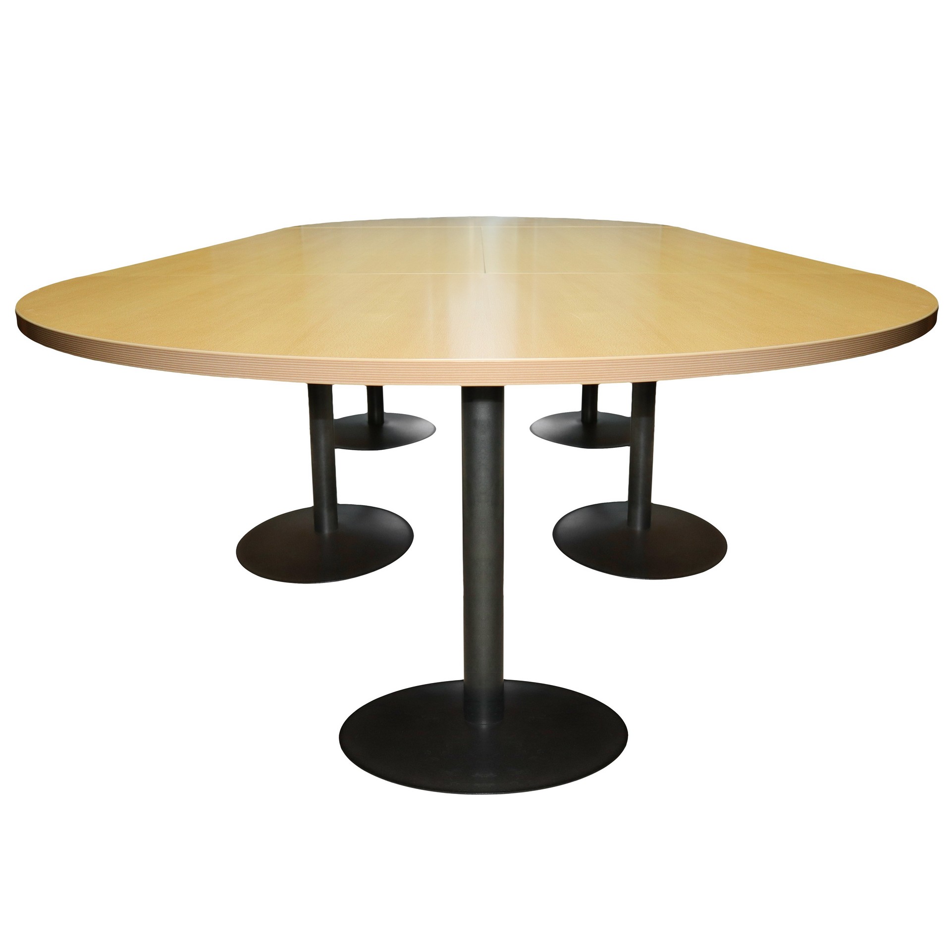 TR by Fantoni - Tavolo da riunione in legno di rovere chiaro con piano componibile H cm 72x320x80 I basamenti sono costituiti da un’essenziale colonna e da una base a disco, entrambi in acciaio colorato grigio antracite.I basamenti sono costituiti da un’essenziale colonna e da una base a disco, entrambi in acciaio colorato grigio antracite.