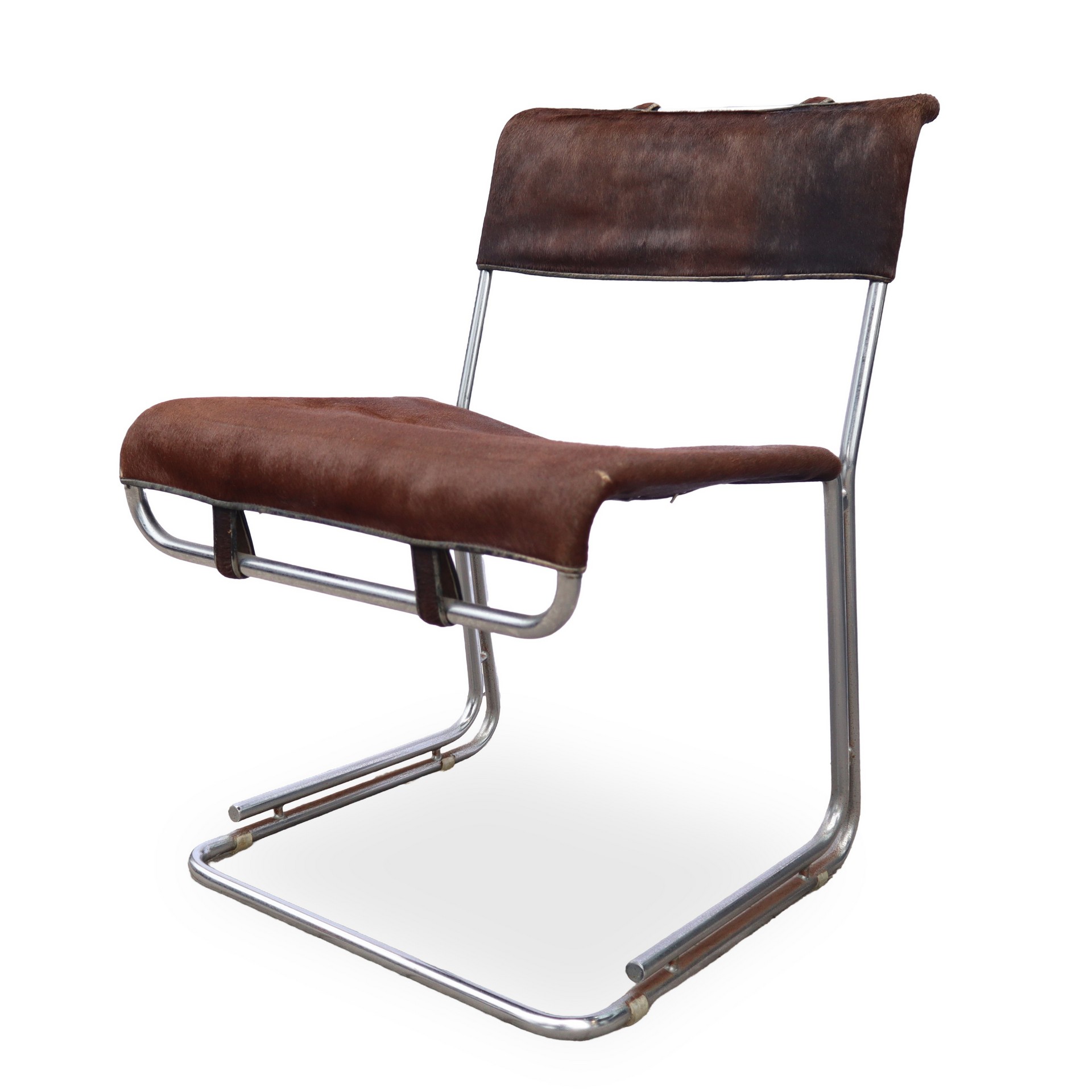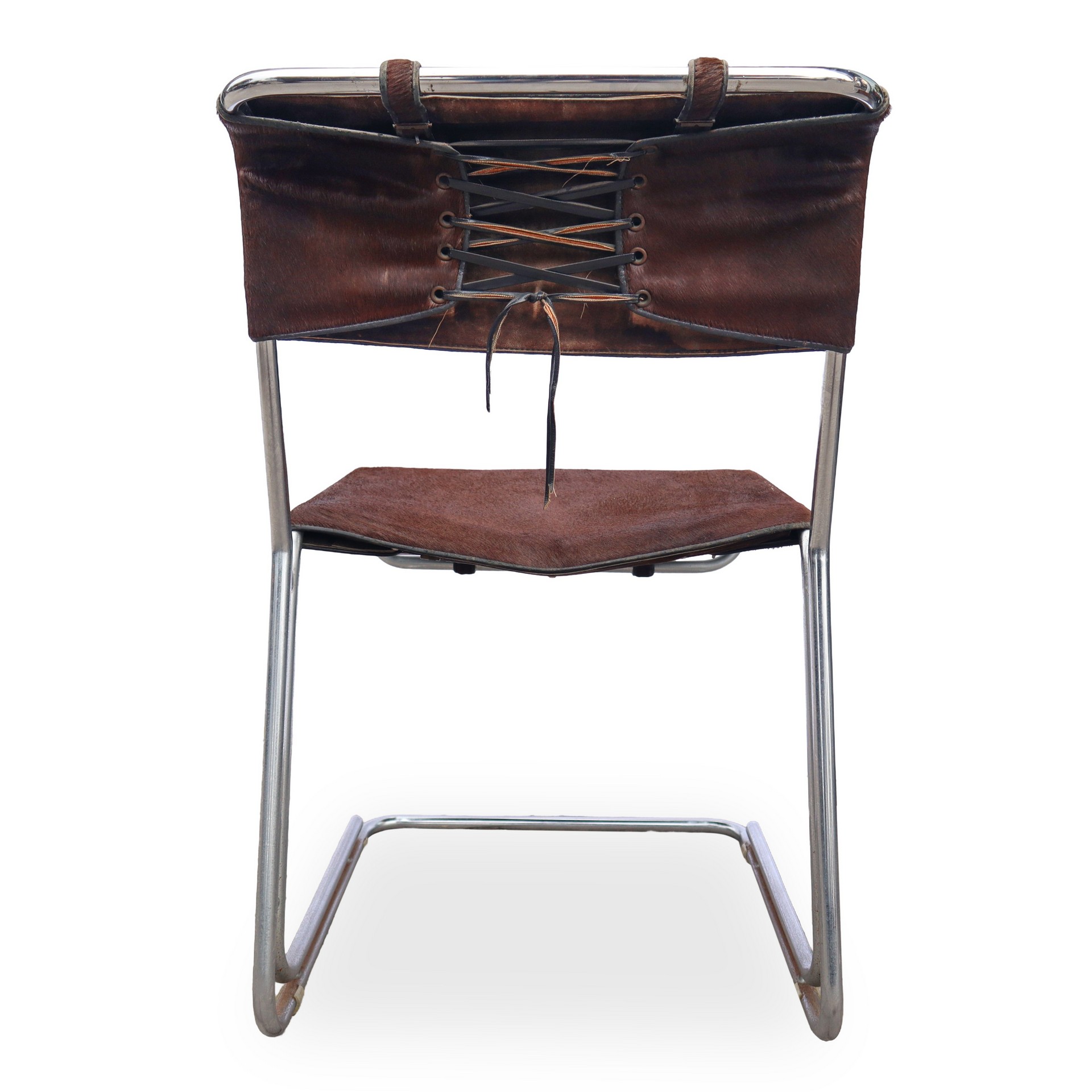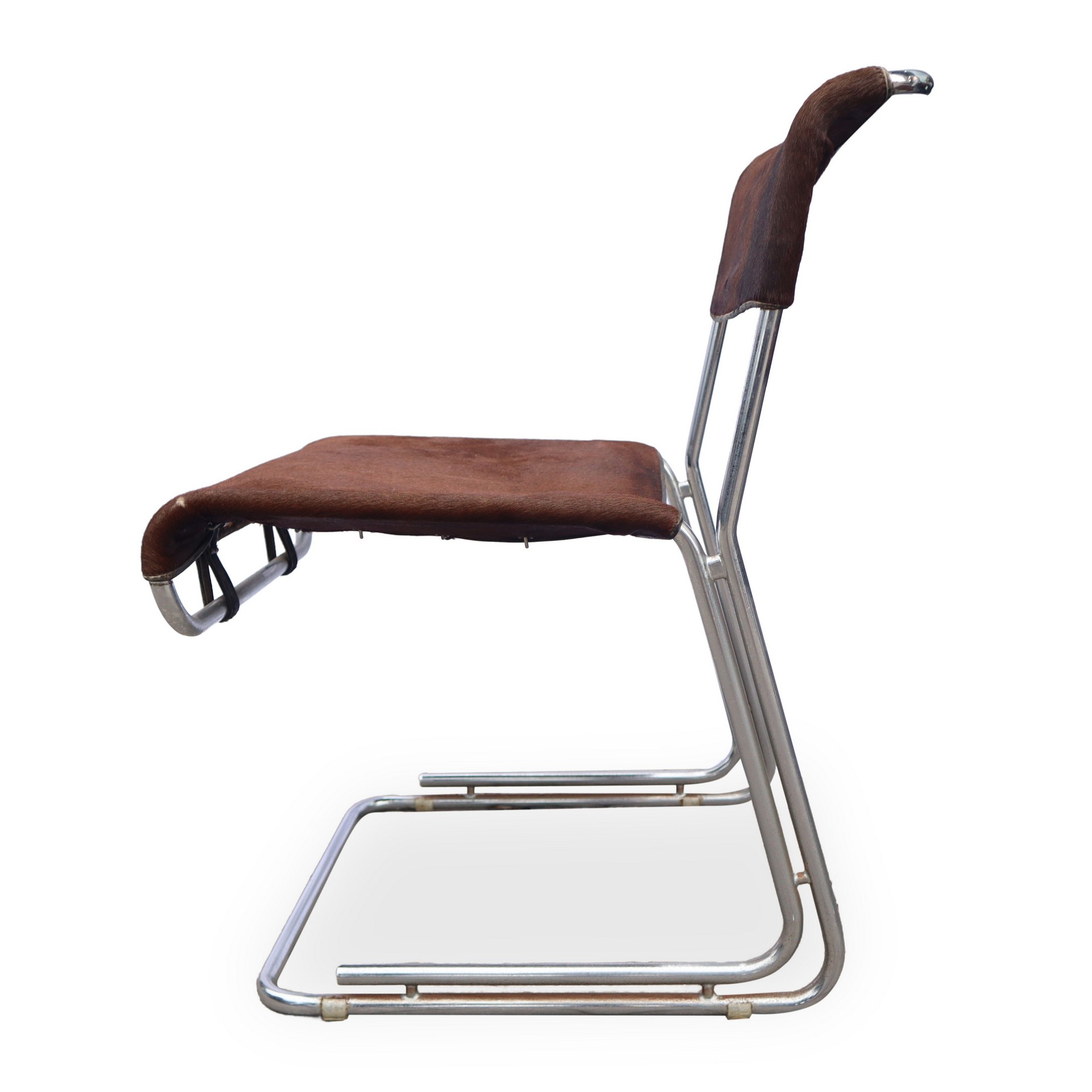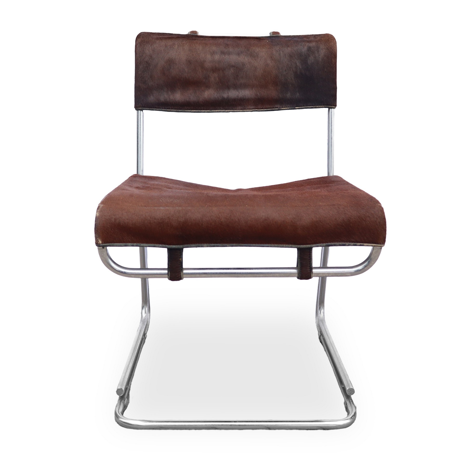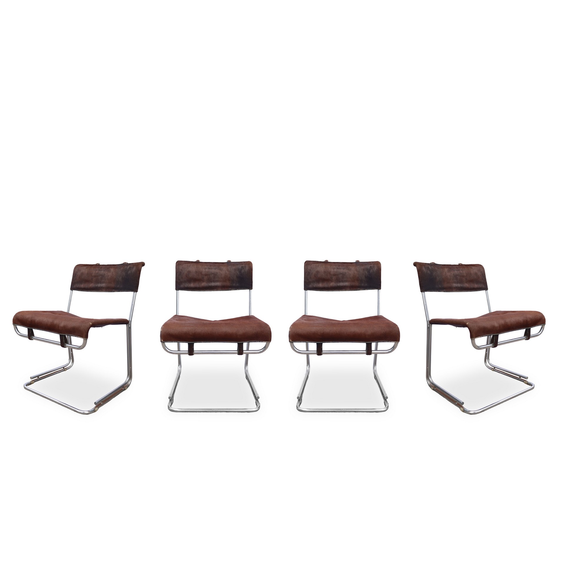 Guido Franceschini - Quattro sedie in cavallino con struttura in metallo cm 79,5X49,3 cad. Segni d'uso e del tempo.Segni d'uso e del tempo.