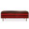 Cassettiera in legno di palissandro con riporti in tessuto rosso e pomelli e piedi in ottone , 60's h cm 67X185X47