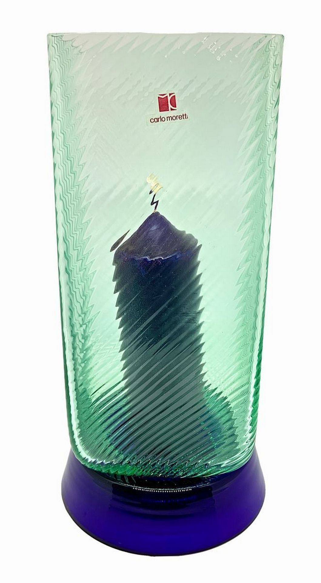 Carlo Moretti (1958) - Portacandela in vetro trasparente e blu