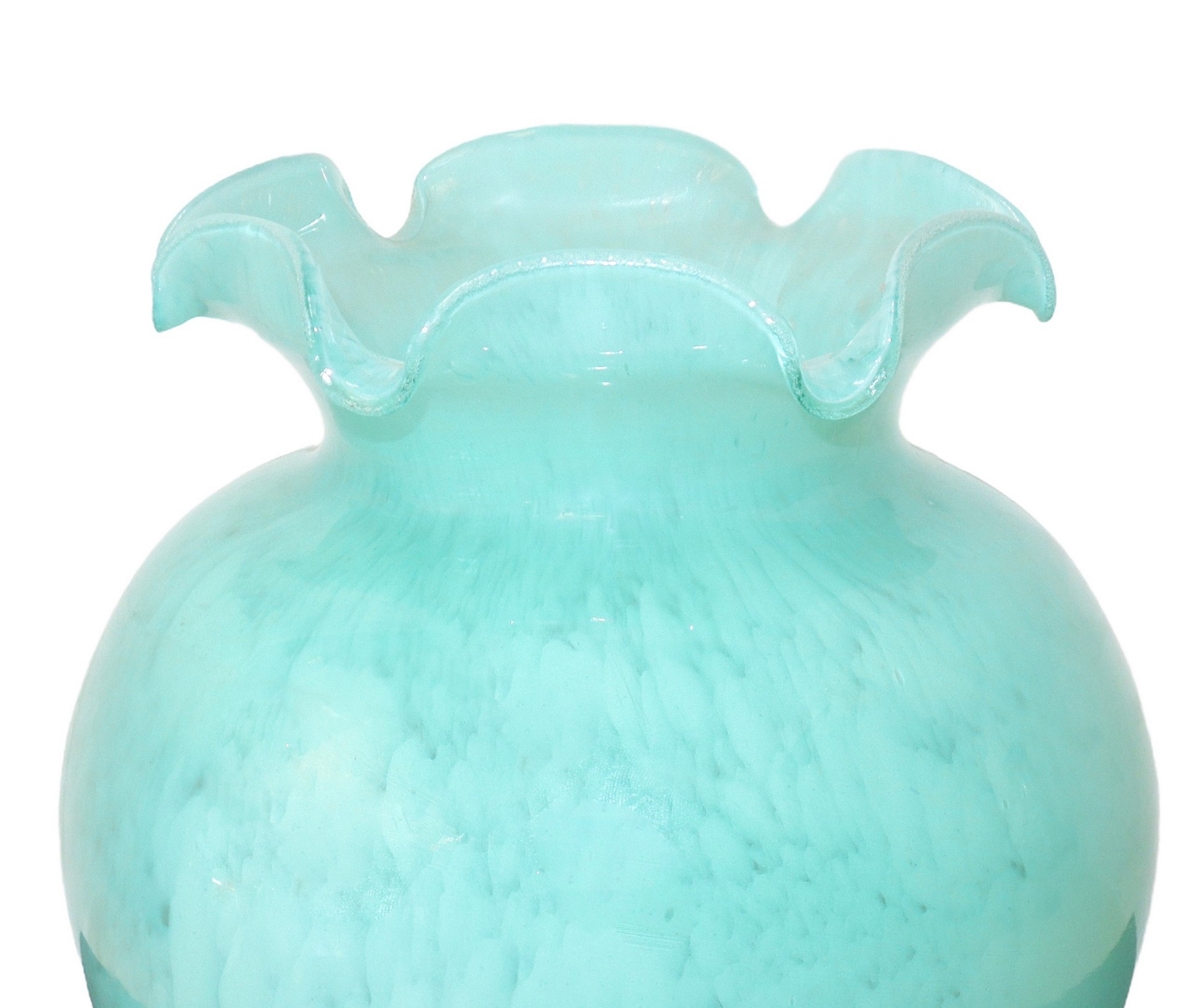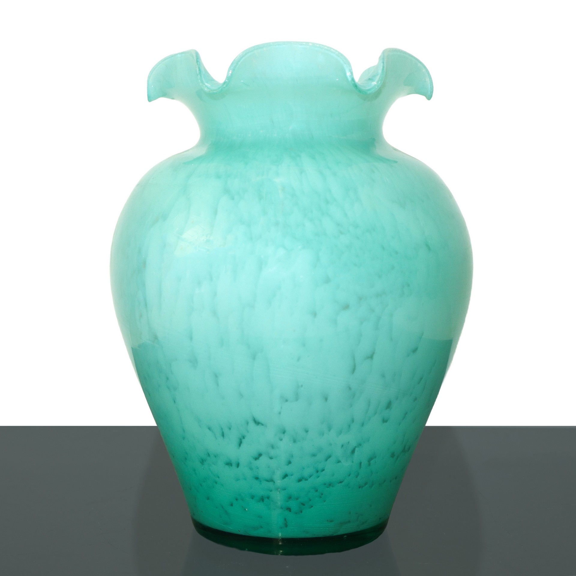 TALEA Studio (Roma 2016) - Vaso in vetro lavorato a mano color verde opalina con bordo collo ondulato