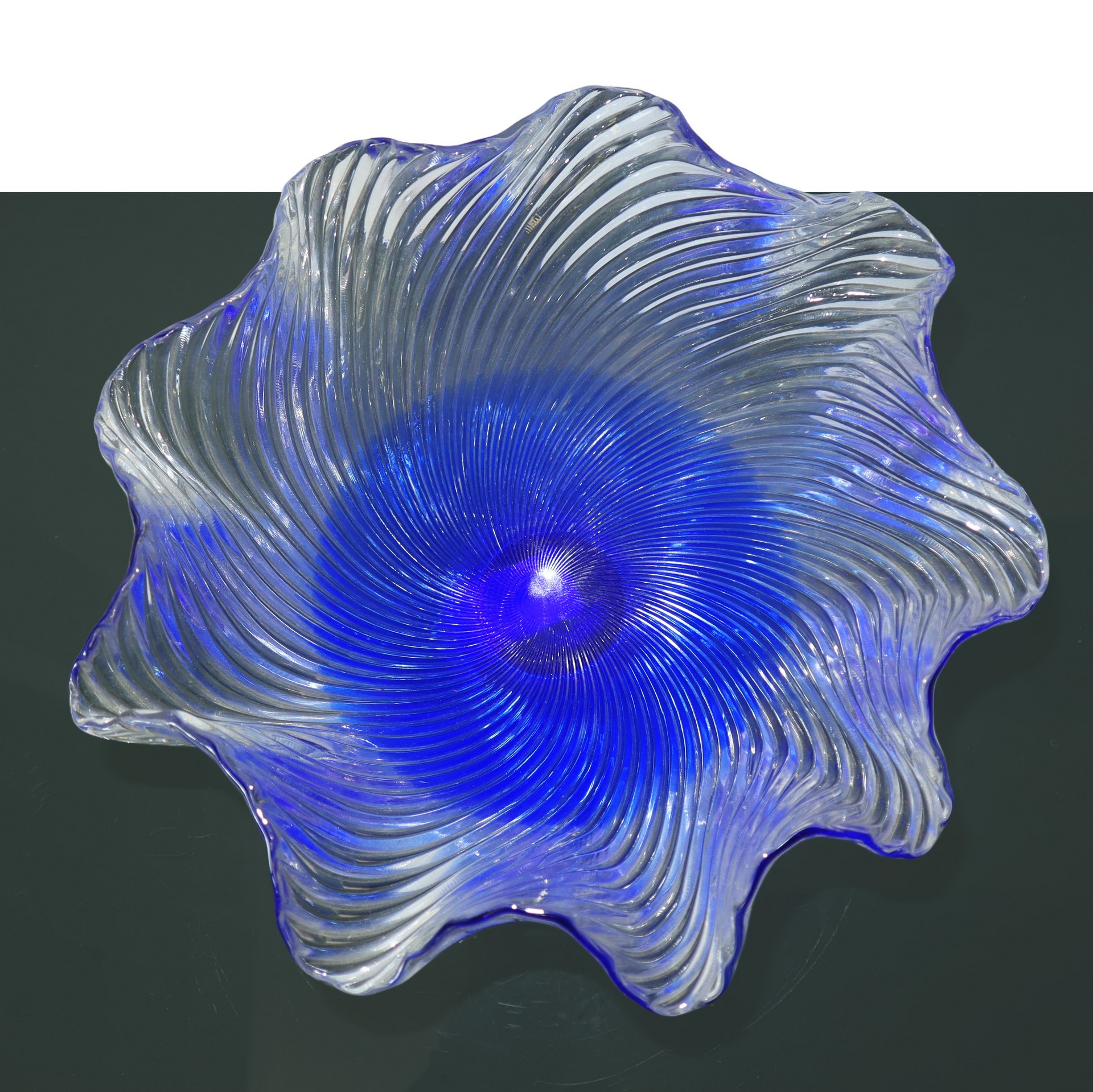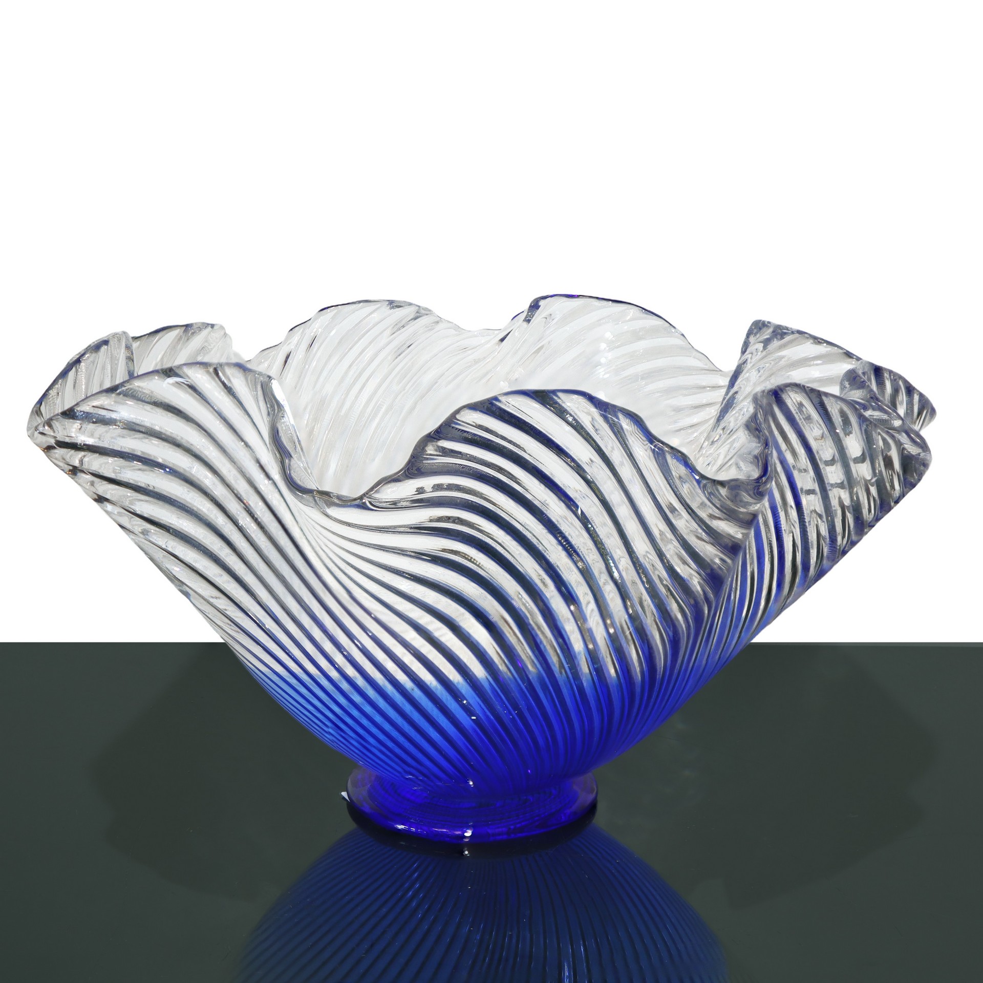 Lotto 269 | Centrotavola in vetro trasparente con bordo ondulato e fondo blu, 20th century