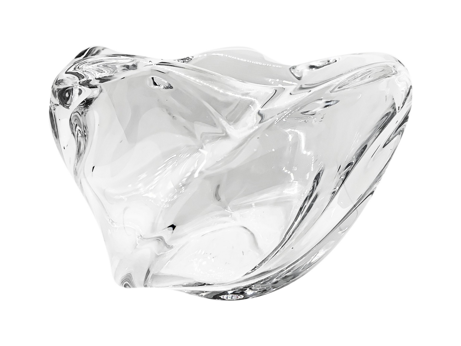 Coppa in vetro trasparente di forma circolare con costolature a rilievo lungo la superfice. H cm 11x16
