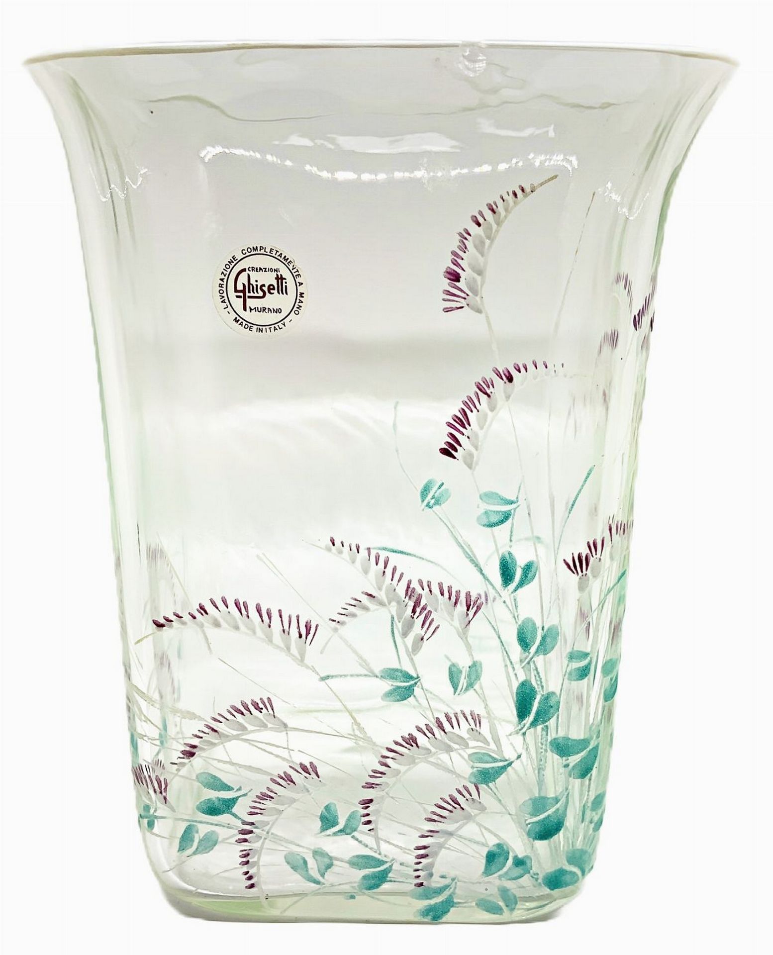 Ghisetti (Rovigo 1870) - Vaso in vetro trasparente di forma rettangolare con decori floreali