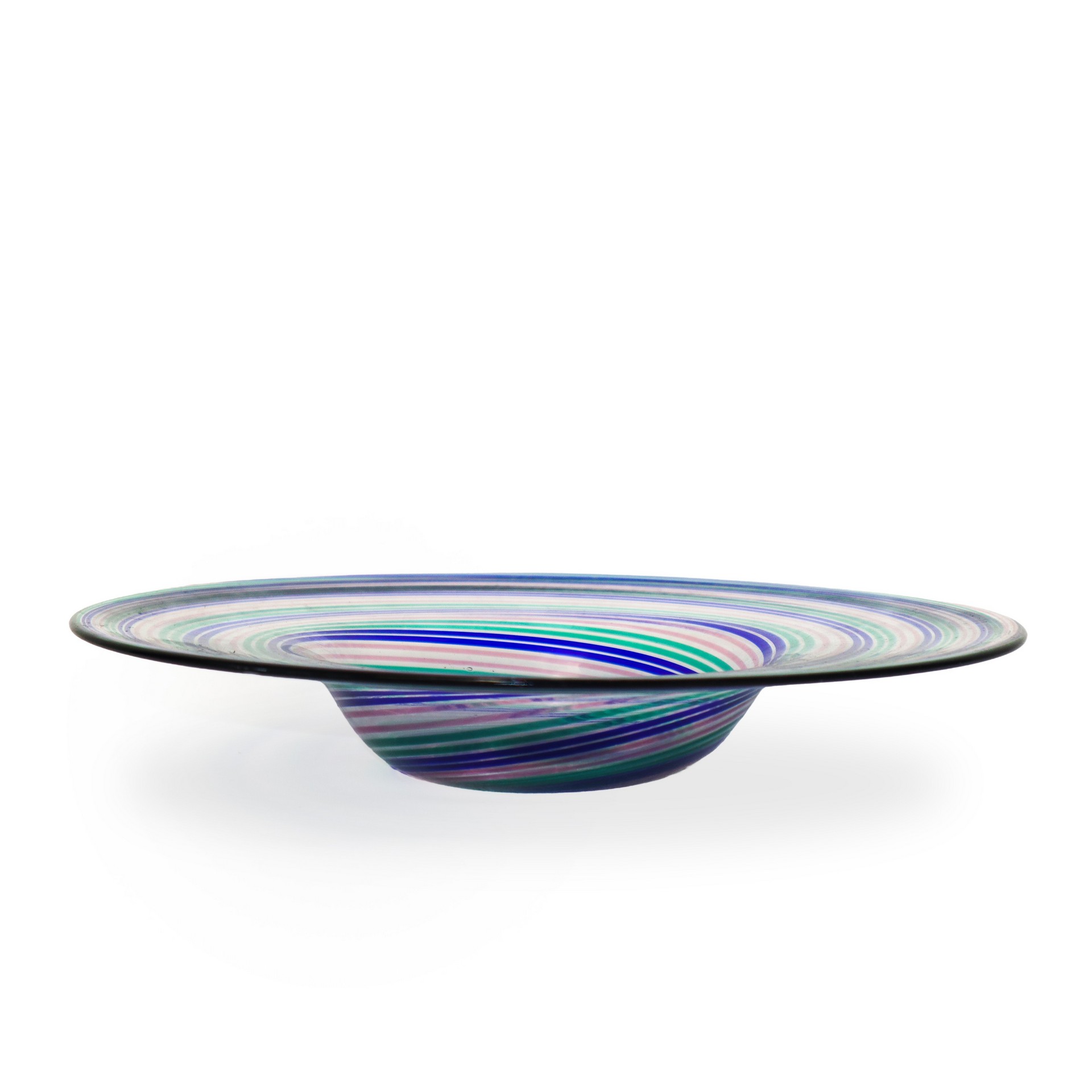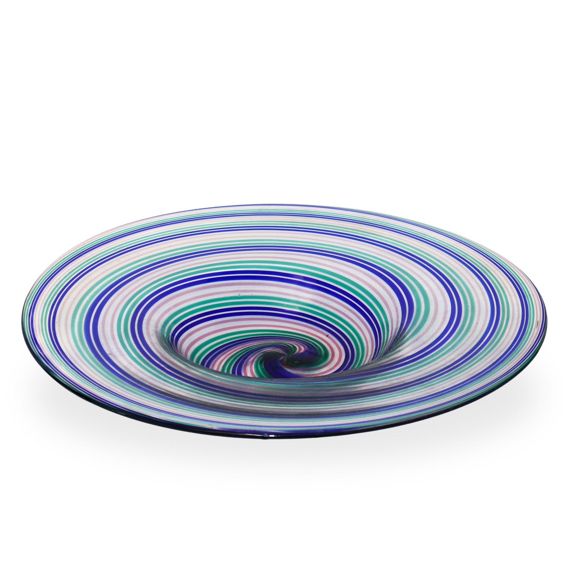Centrotavola in vetro decori blu e verdi, 20th century diametro cm 30