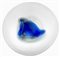 Piccolo centrotavola in vetro satinato con decoro al centro nei toni del blu, Ioan Tamaian, 20th century Diametro cm 19 Romania. Firmato Tomaian.Romania. Firmato Tomaian.