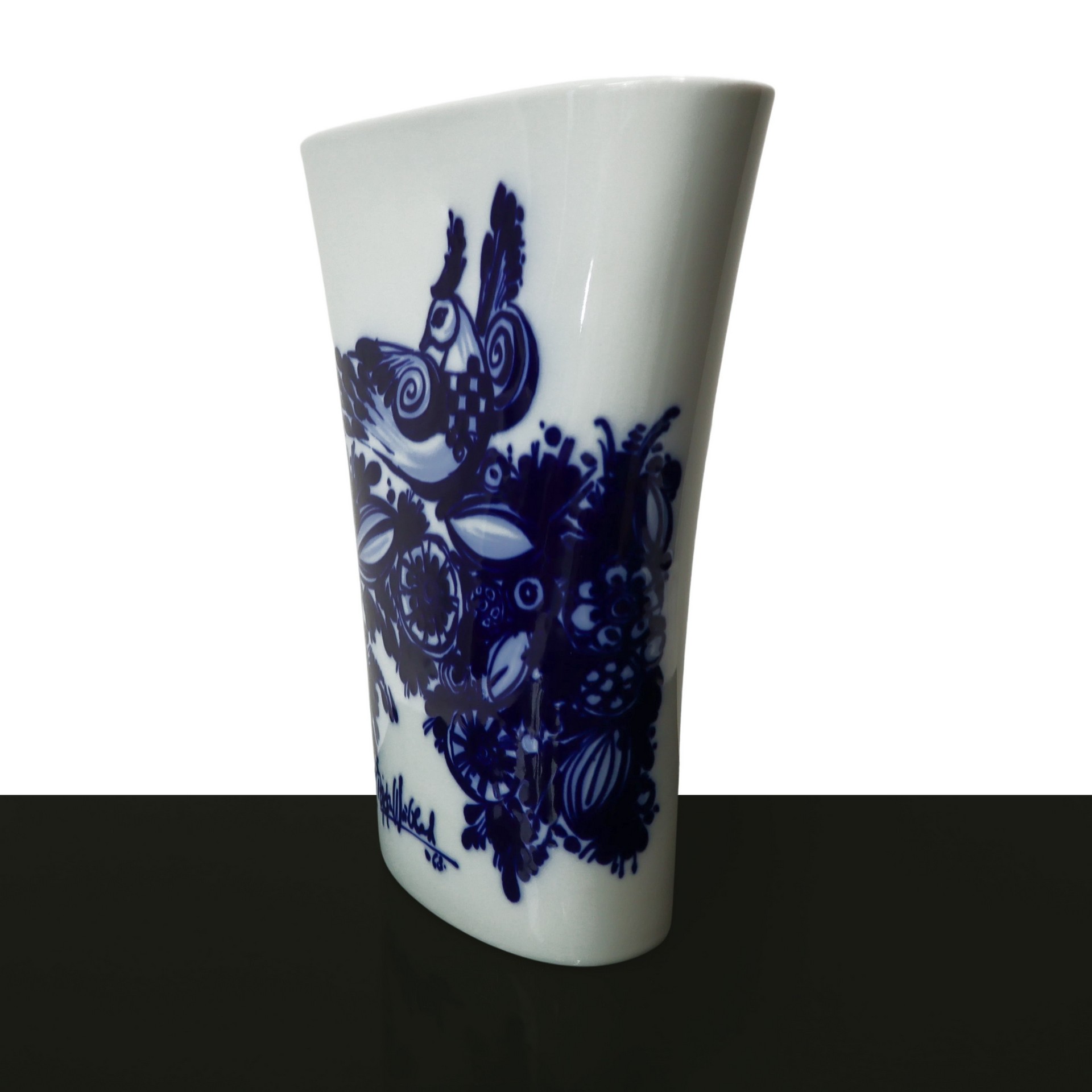 Bjorn Wiinblad per Rosenthal - Vaso in porcellana con decoro di animali e fiori blu sul fronte e sul retro, 1968
