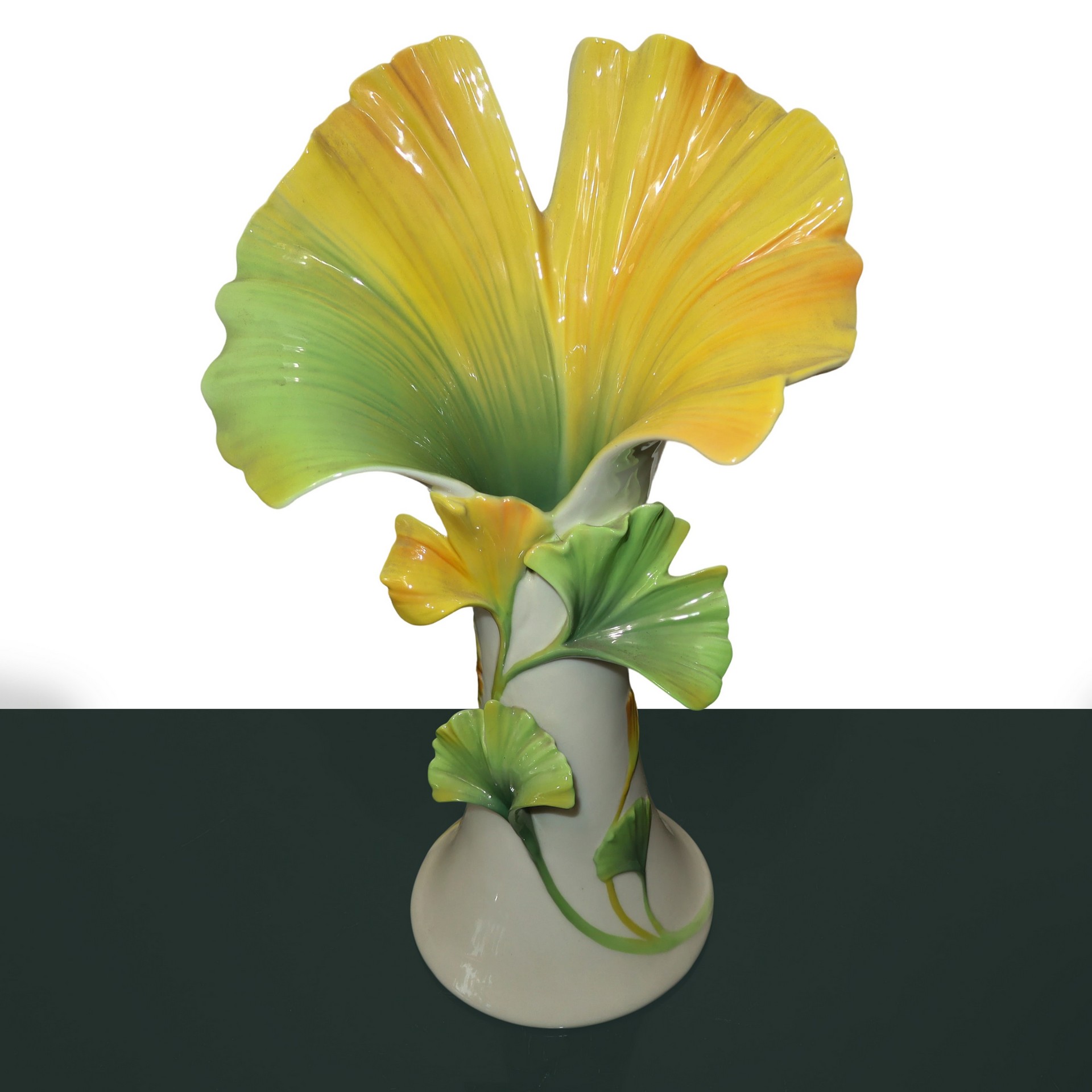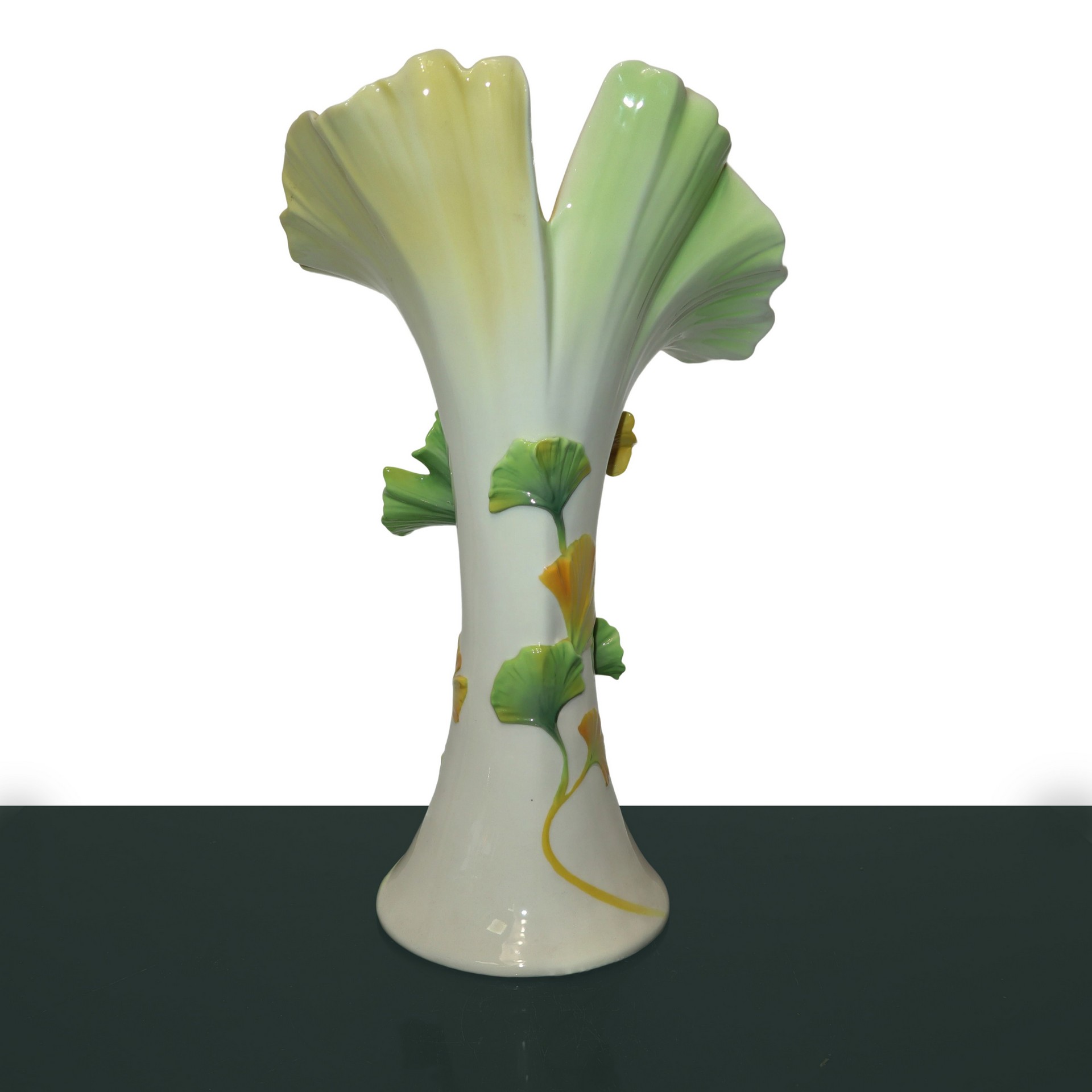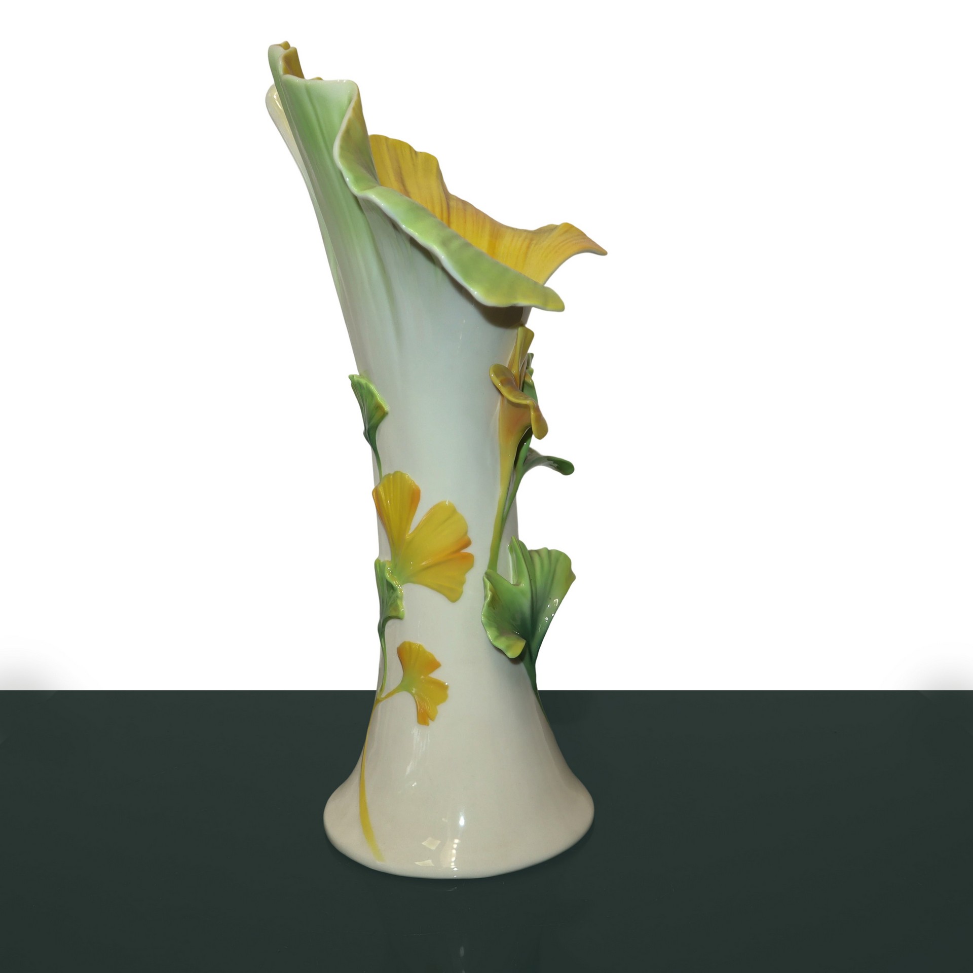 Franz Porcelain - Vaso in porcellana con calle gialle e foglie verdi h cm 36