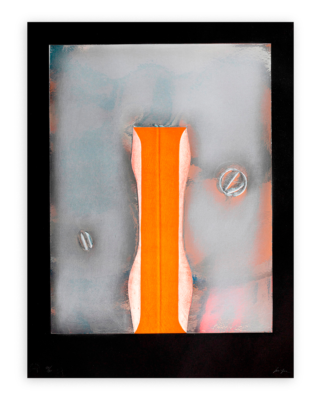 Cartella contenente 6 incisioni originali con elementi in alluminio di Gino Scarpa, ciascuna recante firma e numerazione (Esemplari IV/XVI) a matita al fronte e timbri a secco dello Stampatore e dell'Editore